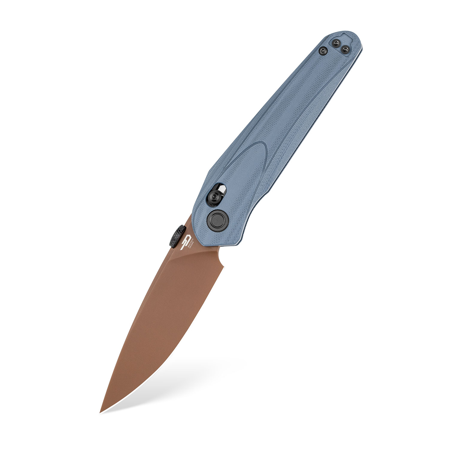 Nóż Składany Bestech Mothus BG67F Gold PVD 14C28N Dark Blue G10 Crossbar Lock Thumb Disc