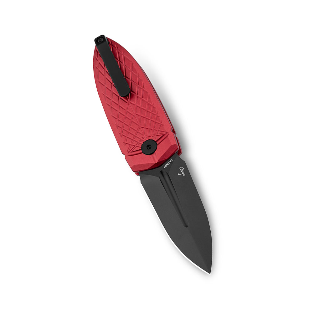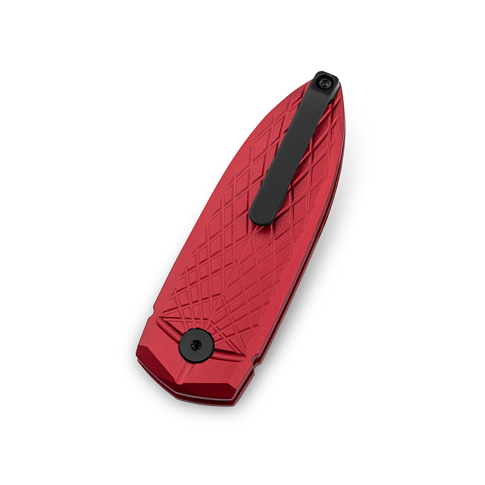 - Rękojeść: okładki z aluminium (czerwone – red), stalowy klips mocujący (jednostronny, Tip-Up)