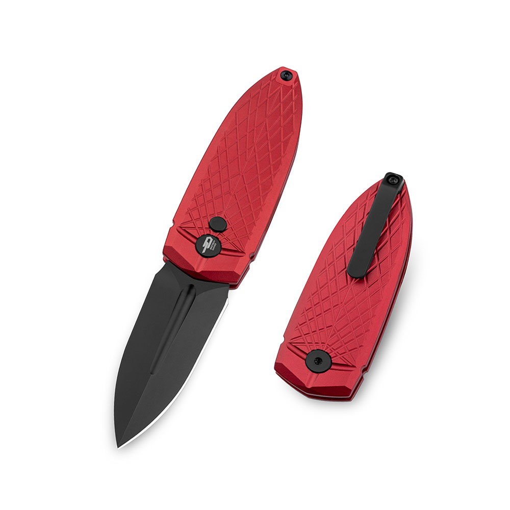 Nóż składany Bestech Ququ Button Lock Black DLC 14C28N Red Aluminium by Gogo BG57B-4