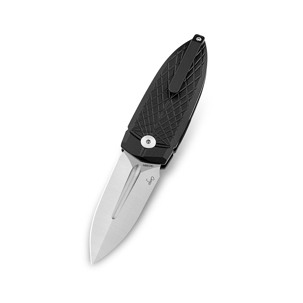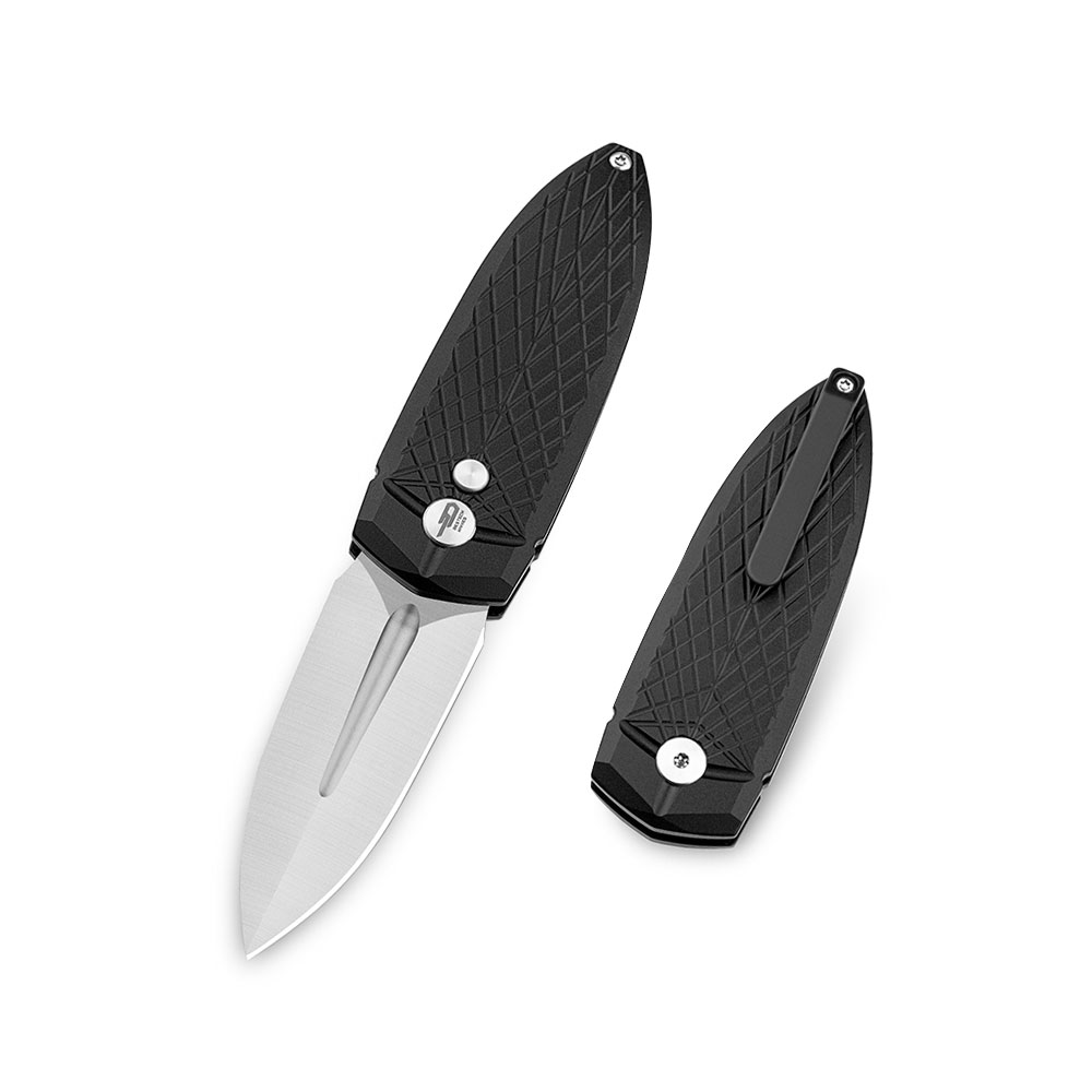 Nóż składany Bestech Ququ Button Lock Satin 14C28N Black Aluminium by Gogo BG57B-1
