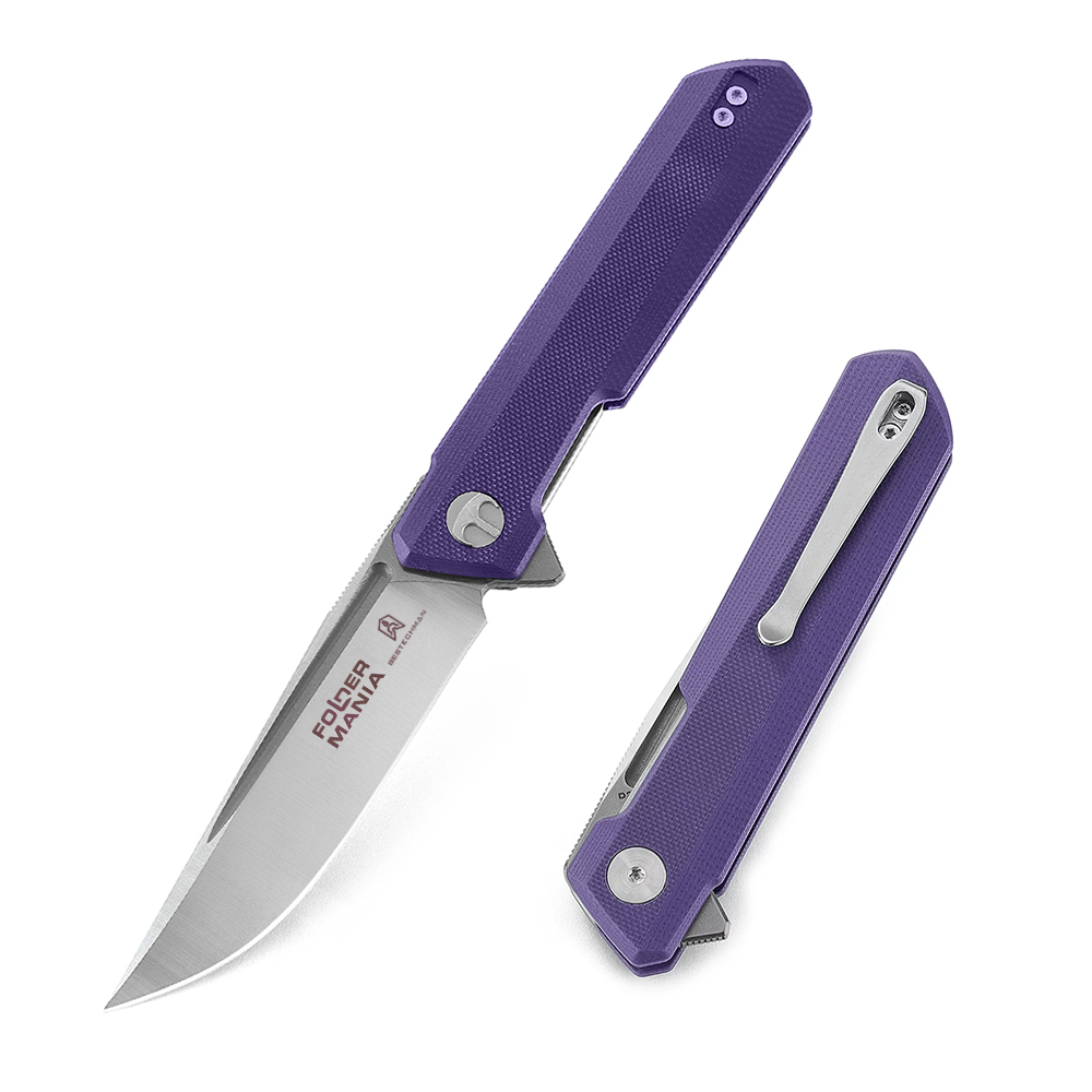 Nóż Składany Bestechman Dundee Foldermania Exclusive Grey Titanized / Satin D2 Purple G10 BMK01R Plus Naszywka i Dodatki
