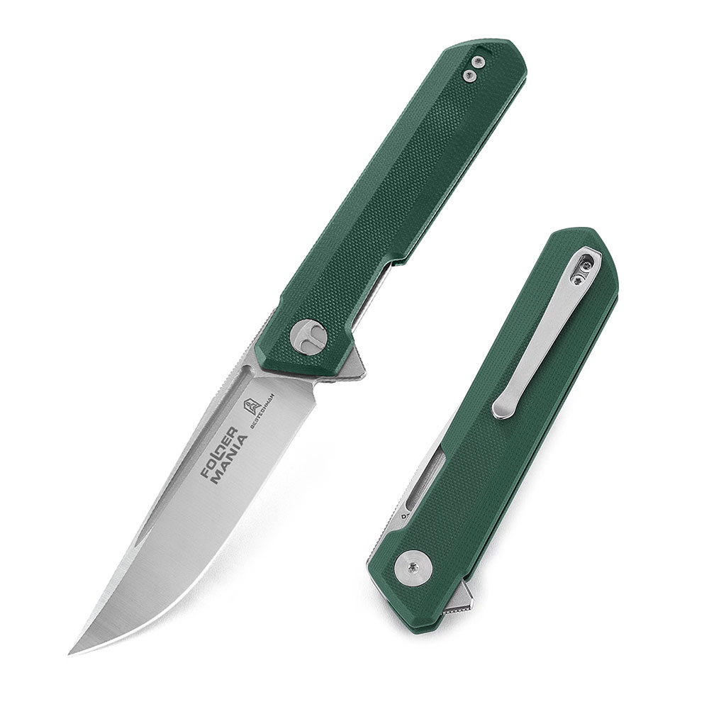 Nóż Składany Bestechman Dundee Foldermania Exclusive Stonewash / Satin D2 Green G10 BMK01S Plus Naszywka i Dodatki