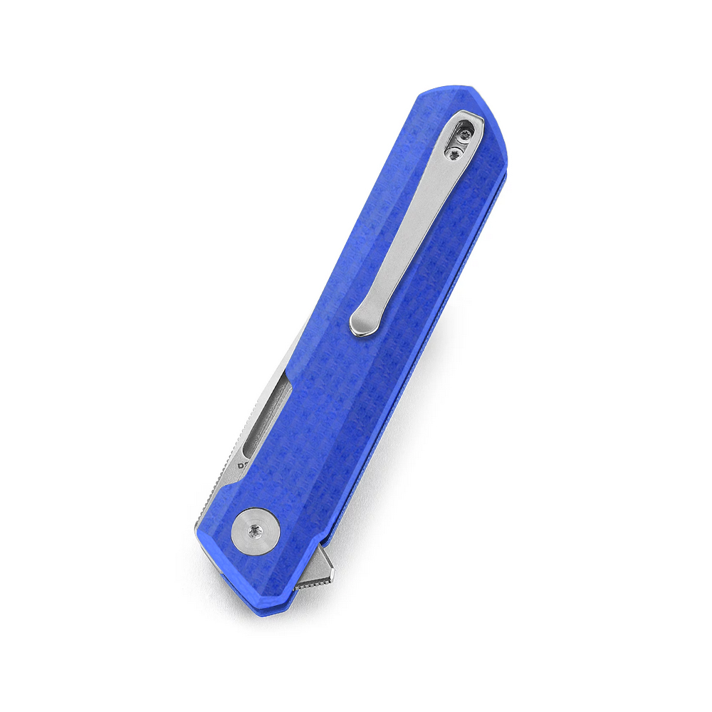 - Rękojeść: stalowe linersy, okładki z G10 (Special Blue), stalowy klips mocujący (przekładalny, Tip-Up)