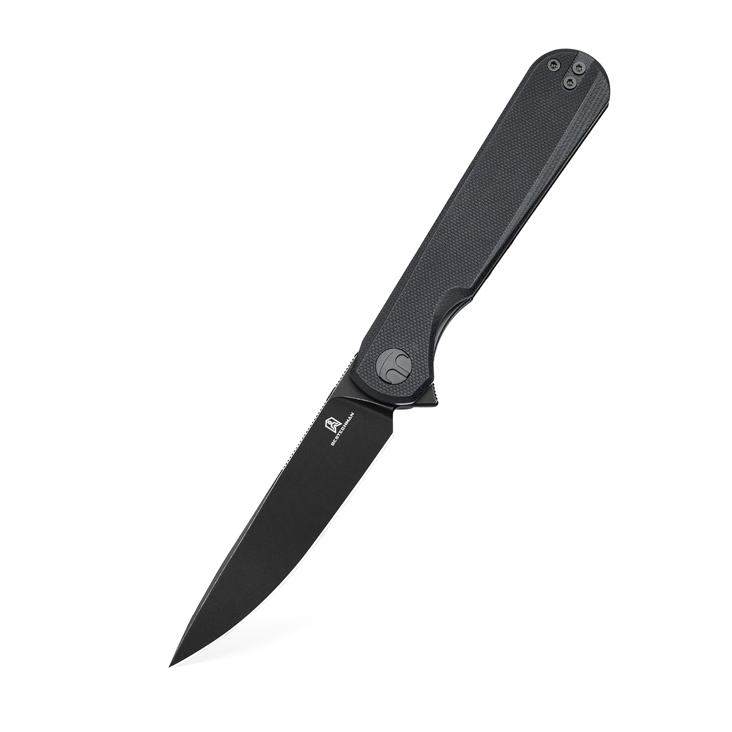 Głownia noża posiada profil drop point z wysokim szlifem płaskim, zapewnia świetną wydajność cięcia. Otwieranie ostrza wspomagają ceramiczne łożyska kulkowe oraz klasyczny flipper (płetwa), która po otwarciu pełni rolę jelca zapobiegającego osunięciu się dłoni na krawędź tnącą. Na grzbiecie klingi znajduje się karbowane oparcie pod kciuk (jimping). Dla bezpieczeństwa obsługi nóż wyposażono w solidną blokadę typu liner lock, zapobiegającą składaniu się ostrza podczas pracy.
