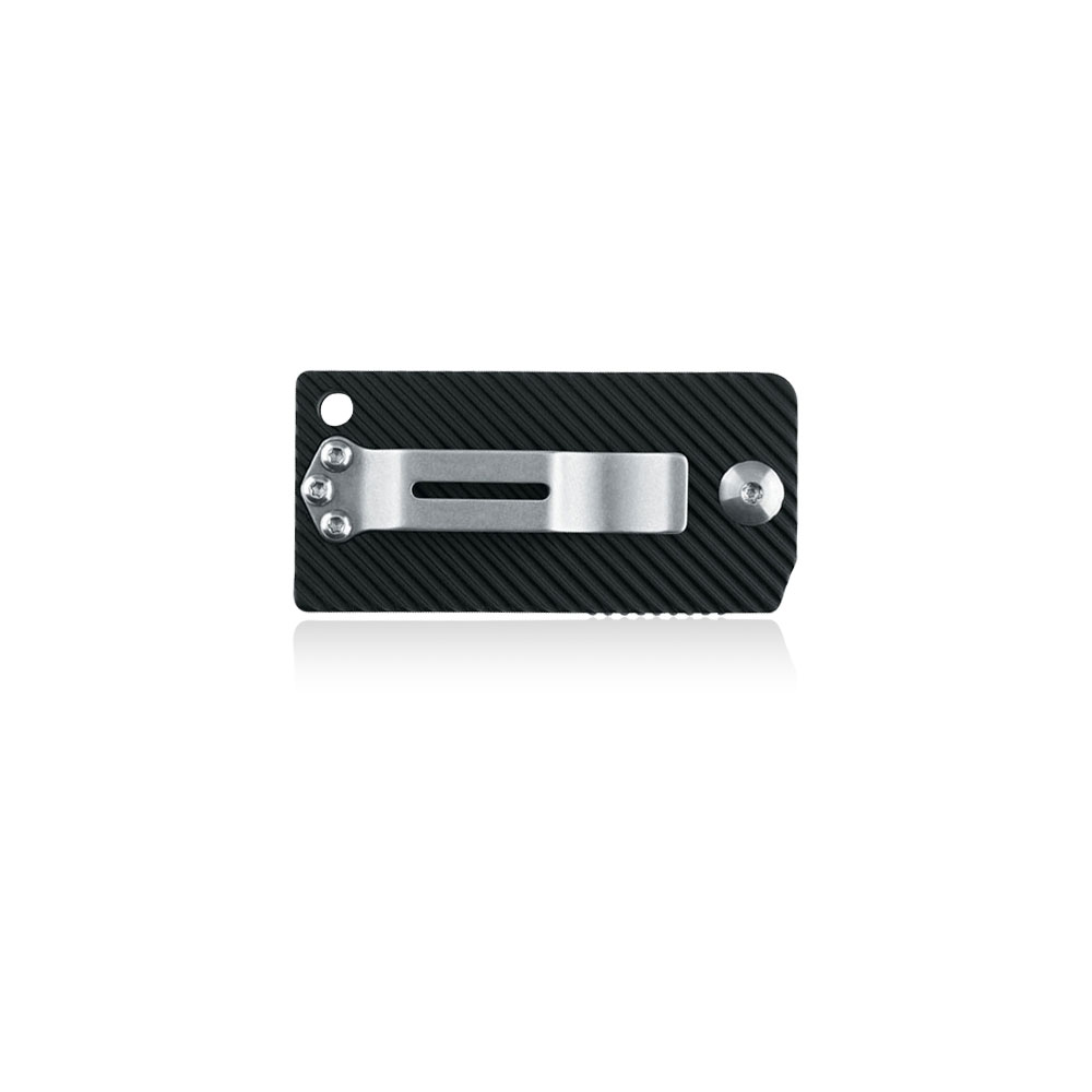 Klips mocujący w stylu Tip-Up zlokalizowany na zakończeniu rękojeści noża umożliwia przenoszenie zamkniętego ostrza wierzchołkiem do góry. Klips wykonany został ze stali nierdzewnej (AISI 420 Stainless Steel).NAZWA: B.Key