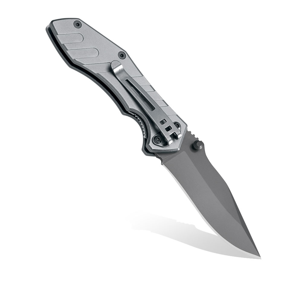 Ostrze noża wykonane zostało ze stali nierdzewnej 440. Stal ta ma bardzo dobre właściwości tnące i łatwo się ostrzy. Głownia w stylu clip point posiada szlif wklęsły i została pokryta antyrefleksyjną i bardzo twardą powłoką tytanową. Na grzbiecie ostrze posiada karbowanie (jimping), stanowiące podparcie dla kciuka oraz fałszywkę (swedge), poprawiającą właściwości penetrujące. Do otwierania noża służą wygodne obustronne kołki.