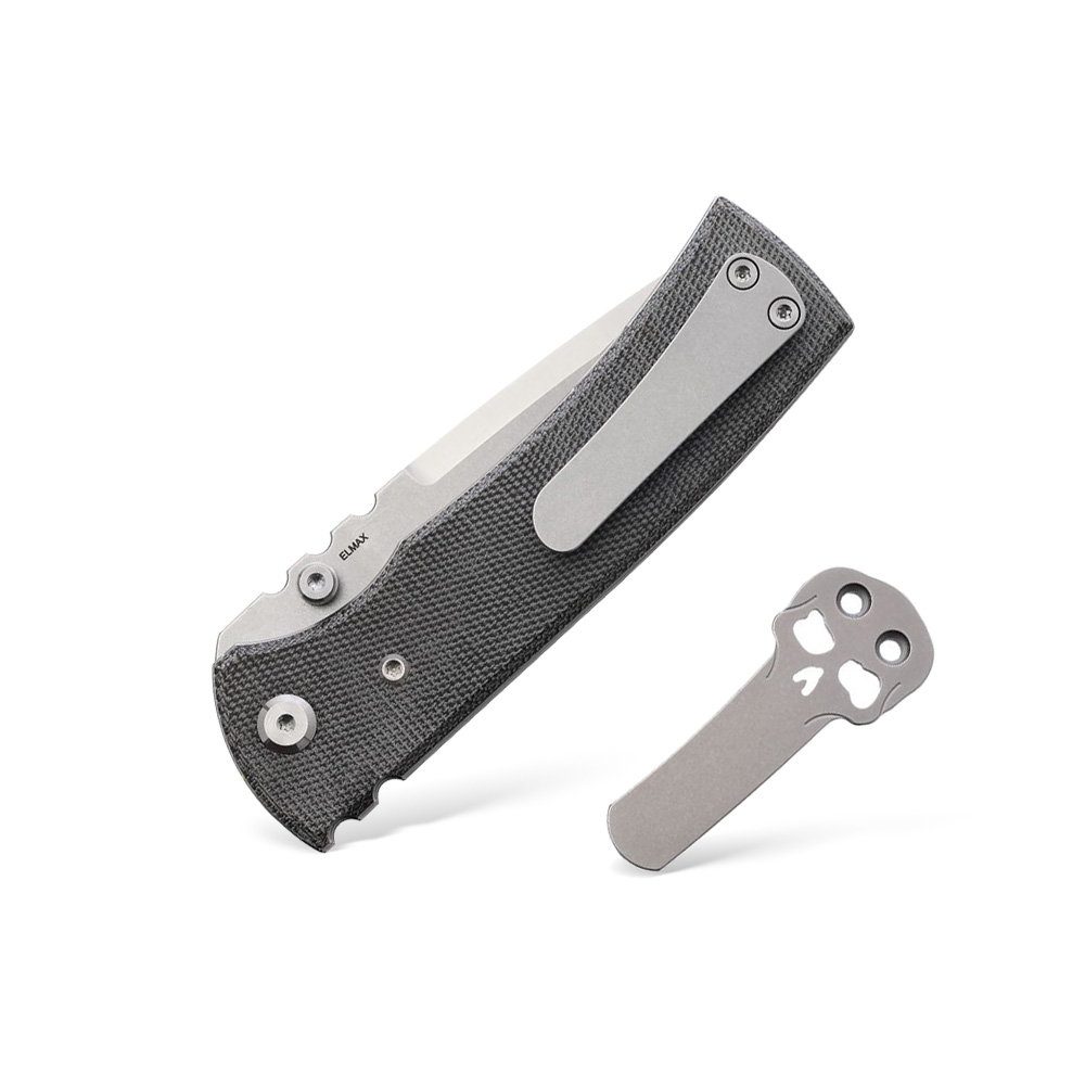 - Stal: Elmax (60-62 HRC), wykończenie: satyna na szlifach, stonewash na płazach