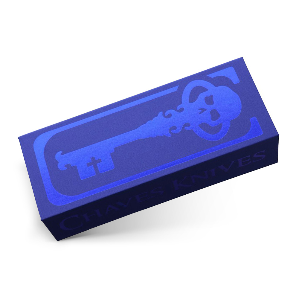 **SERIA BLUE LABEL LINE**: Produkcyjna linia folderów Chaves Knives w przystępnym przedziale cenowym. Uproszczona w stosunku do tytanowych konstrukcji, z blokadą ramową – frame lock, linia Blue Label Line zaprojektowana została z blokadą liner lock, z kosztowo bardziej przystępnych, ale nadal solidnych materiałów. Ostrze z europejskiej stali premium Elmax czyni noże składane z tej linii solidne narzędzia codziennego użytku.