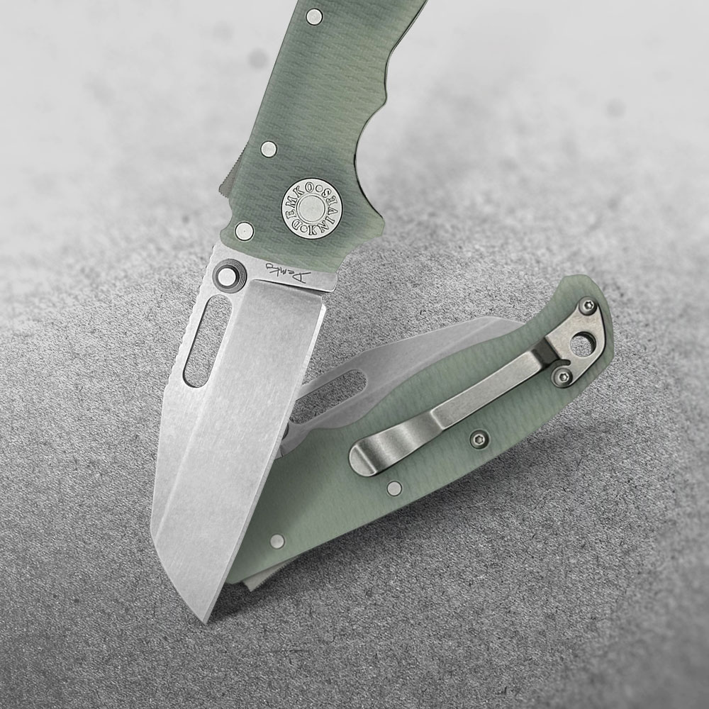Okładki rękojeści oraz backspacer wykonane zostały z wytrzymałego kompozytu G10 i osadzone na stalowym korpusie (linersy). W rękojeści zaprojektowano otwór na paracord, sznurek, smycz itd., bądź opcjonalne podpięcie ozdoby w zależności od preferencji użytkownika.