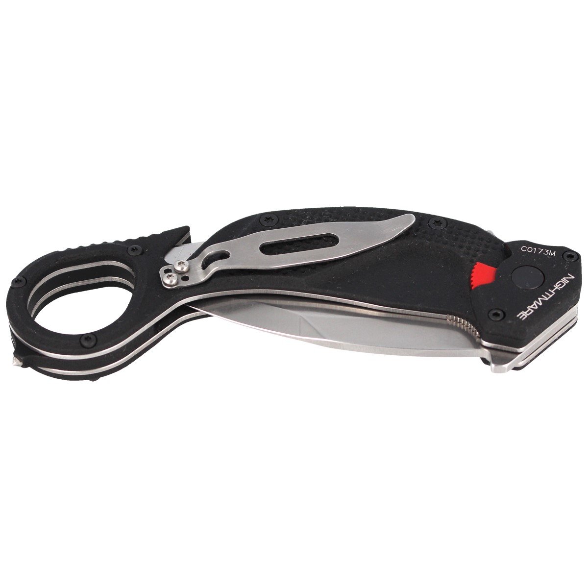 NightMare Stone Washed, wysoce zaawansowany karambit i nóż ratowniczy w jednym, projekt włoskiej firmy Extrema Ratio. Przyjęty na wyposażenie specjalnych jednostek interwencyjnych policji U.S.I.V.P. księstwa Monako. Doskonałe narzędzie jak i niezwykle efektywny pełnowymiarowy (full size) nóż przeznaczony do profesjonalnego użytku. Folder otwiera się i zamyka lekko i płynnie. Doświadczeni wytrawni użytkownicy karambitów nie będą rozczarowani.