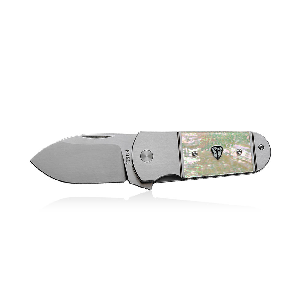 Nóż składany Finch Buffalo Tooth Mother of Pearl posiada użytkową, satynowaną głownię typu spear point ze szlifem płaskim, wykonaną ze stali 154 CM, a rękojeść to w tytan z wstawkami z masy perłowej. Folder posiada blokadę typu frame lock, do otwierania natomiast służą flipper (płetwa) i podcięcie pod paznokieć (nail nick), często stosowane w klasycznych nożach składanych. Głownia pracuje na łożyskach ceramicznych. Za wygodne przenoszenie noża odpowiada tytanowy klips (Tip-Up).