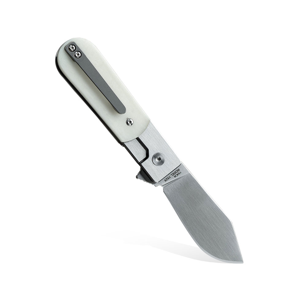 Klips z wytrzymałego i lekkiego tytanu zapewnia stabilne przenoszenie noża w kieszeni, zamocowanie w plecaku, sakwie, nerce itd., czym przyczynia się do minimalizacji ryzyka zgubienia narzędzia. Jest to klips w wykonaniu Tip-Up, zlokalizowany na zakończeniu rękojeści noża umożliwiający przenoszenie zamkniętego ostrza wierzchołkiem do góry.NAZWA: Model 1929