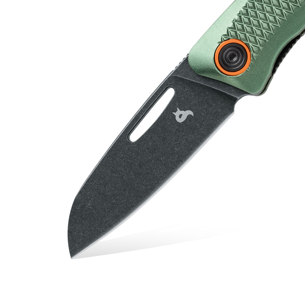 Nóż składany Black FOX Feresa BF-762 OD Aluminium OD Green posiada głownię sheepsfoot ze szlifem płaskim i wykończenie black stoneawsh dla ukrywania ewentualnych rys. Otwierany jest otworem w głowni pozwalającym na szybkie rozłożenie noża a za blokowanie odpowiada liner lock. Rękojeść wykonana została z anodyzowanego aluminium i połączona stalowym backspacerem. Całość uzupełnia stalowy klips (Tip-Up).