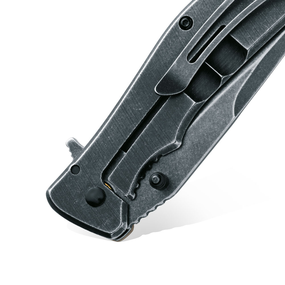 Nóż otwiera się jedną ręką używając do tego obustronnego kołka w głowni. Proces otwierania noża wspierają łożyska kulkowe. Nóż posiada samoczynnie ustawiającą się podczas jego otwierania stabilną i wytrzymałą blokadę frame lock chroniącą przed niekontrolowanym zamknięciem podczas używania.