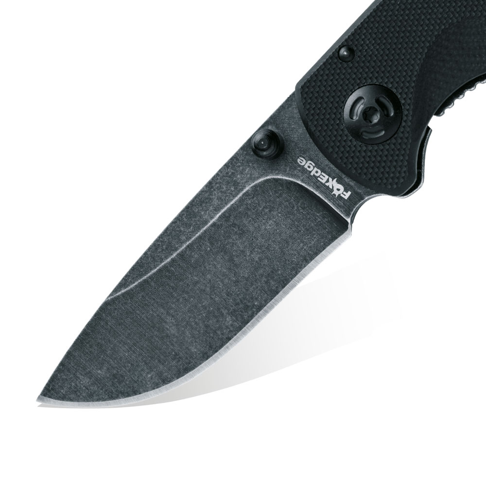 Nóż składany FOX Edge Pop Smoke FE-023 Black G10 by Russ Kommer posiada głownię ze stali nierdzewnej 8Cr13MoV (w powłoce stone washed PVD) oraz rękojeść ze stali i czarnego kompozytu G10. Ostrze noża otwieramy jedną ręką używając do tego obustronnego kołka na głowni. Otwartą głownię przed zamknięciem zabezpiecza blokada frame lock. Nóż wyposażony został w stalowy klips mocujący.