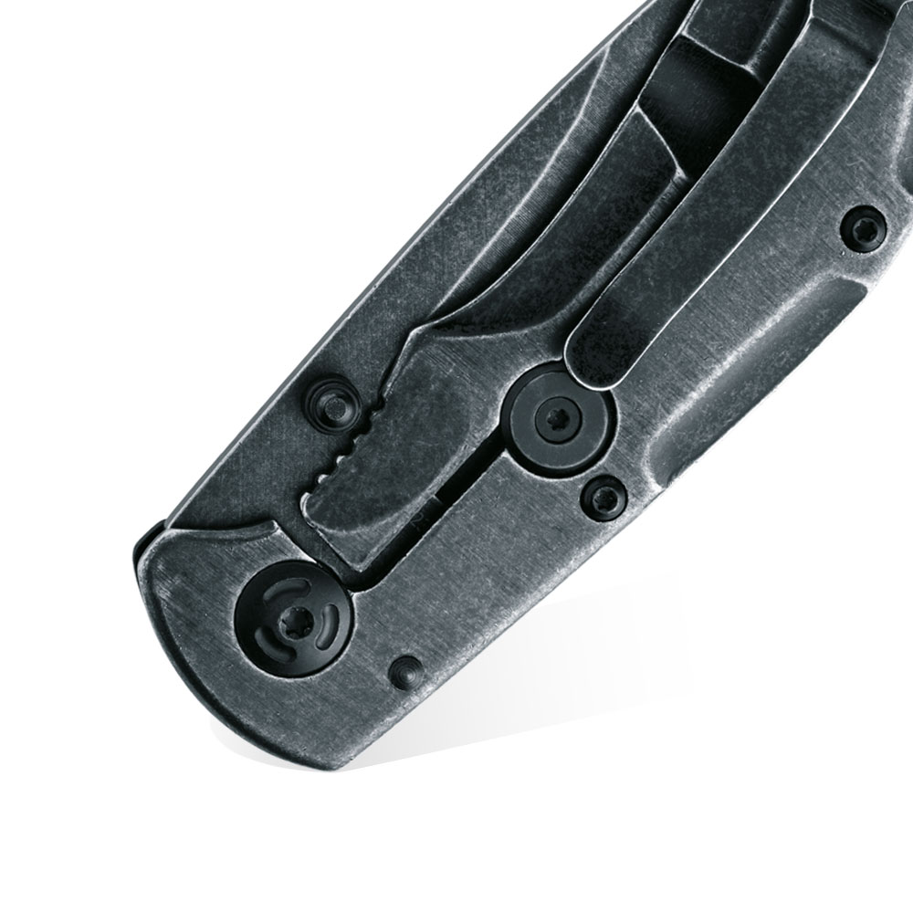 Nóż otwiera się jedną ręką używając do tego obustronnego kołka w głowni. Proces otwierania noża wspierają łożyska kulkowe. Nóż posiada samoczynnie ustawiającą się podczas jego otwierania stabilną i wytrzymałą blokadę frame lock chroniącą przed niekontrolowanym zamknięciem podczas używania.