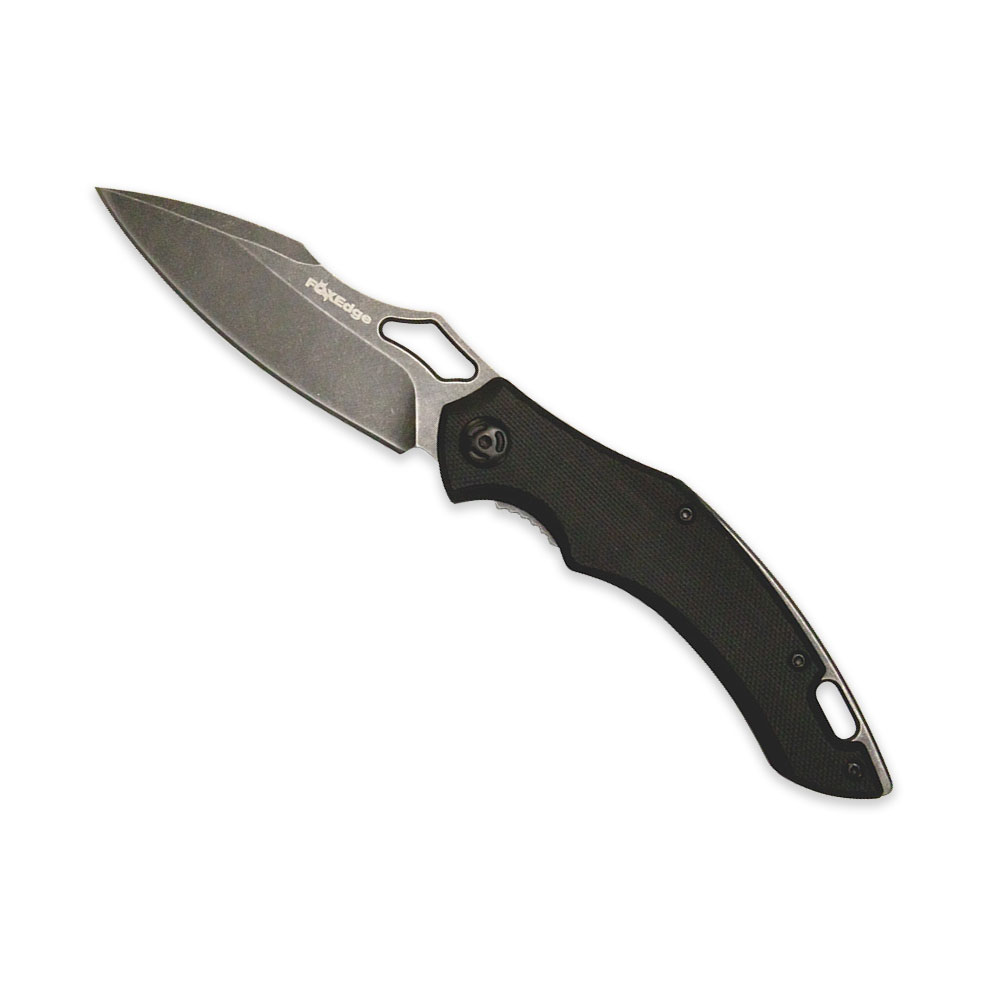 Nóż składany FOX Edge Sparrow FE-034 G10 Black by Denis Simonutti posiada głownię ze stali nierdzewnej 9Cr13MoV (satyna) oraz rękojeść ze stalowymi linersami i okładkami z kompozytu G10. Ostrze noża otwieramy jedną ręką używając do tego otworów w głowni. Otwartą głownię przed zamknięciem zabezpiecza blokada liner lock. Nóż wyposażony został w stalowy klips mocujący.