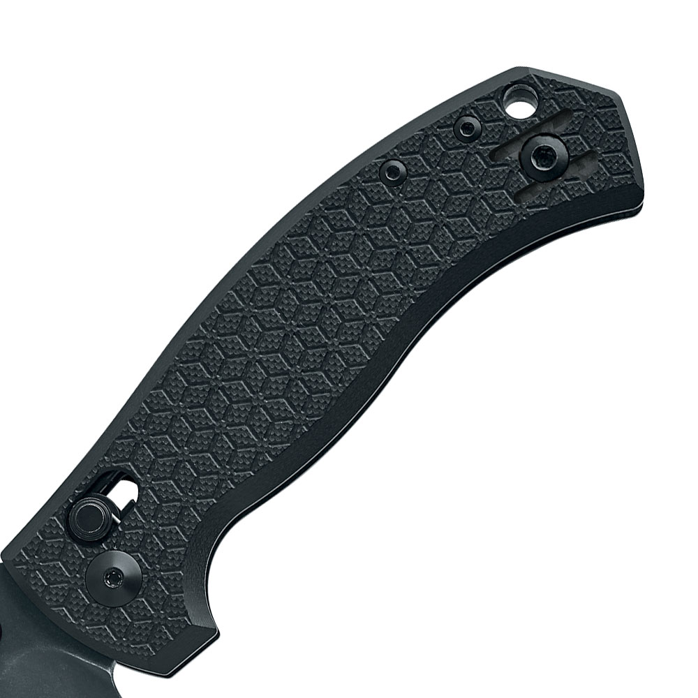 Okładziny rękojeści wykonane zostały z wytrzymałego kompozytu G10. Okładki osadzono na stalowej konstrukcji (linersy ze stali nierdzewnej). Całość konstrukcji spaja backspacer z aluminium. Materiał okładek jest odporny na zawilgocenie, zmiany temperatury, większość rozpuszczalników i kwasów i co najważniejsze charakteryzuje się wysoką odpornością na uszkodzenia mechaniczne.
