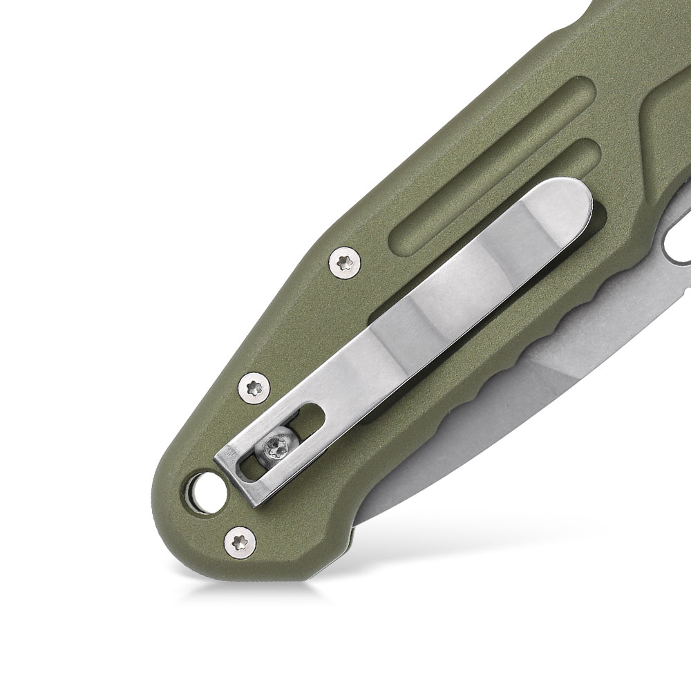 Nóż wyposażono w stalowy klips mocujący, umożliwiający stabilne przenoszenie w kieszeni, zamocowanie w plecaku, organizerze, nerce itd.