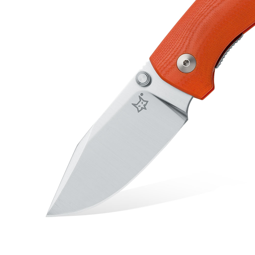 Nóż Składany FOX Knives FX-523 OR N690Co Orange G10 by Jasper Voxnæs posiada głownię ze stali N690Co oraz rękojeść z pomarańczowego G10. Klips mocujący wykonano ze stali. Głownię noża blokuje liner lock, a do jego otwierania służy obustronny kołek. Nóż jest dostarczany z tekstylnym etui.