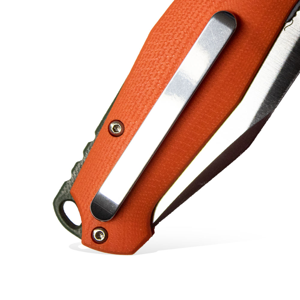 Nóż wyposażono w stalowy klips mocujący, umożliwiający stabilne przenoszenie w kieszeni, zamocowanie w plecaku, organizerze, nerce itd.