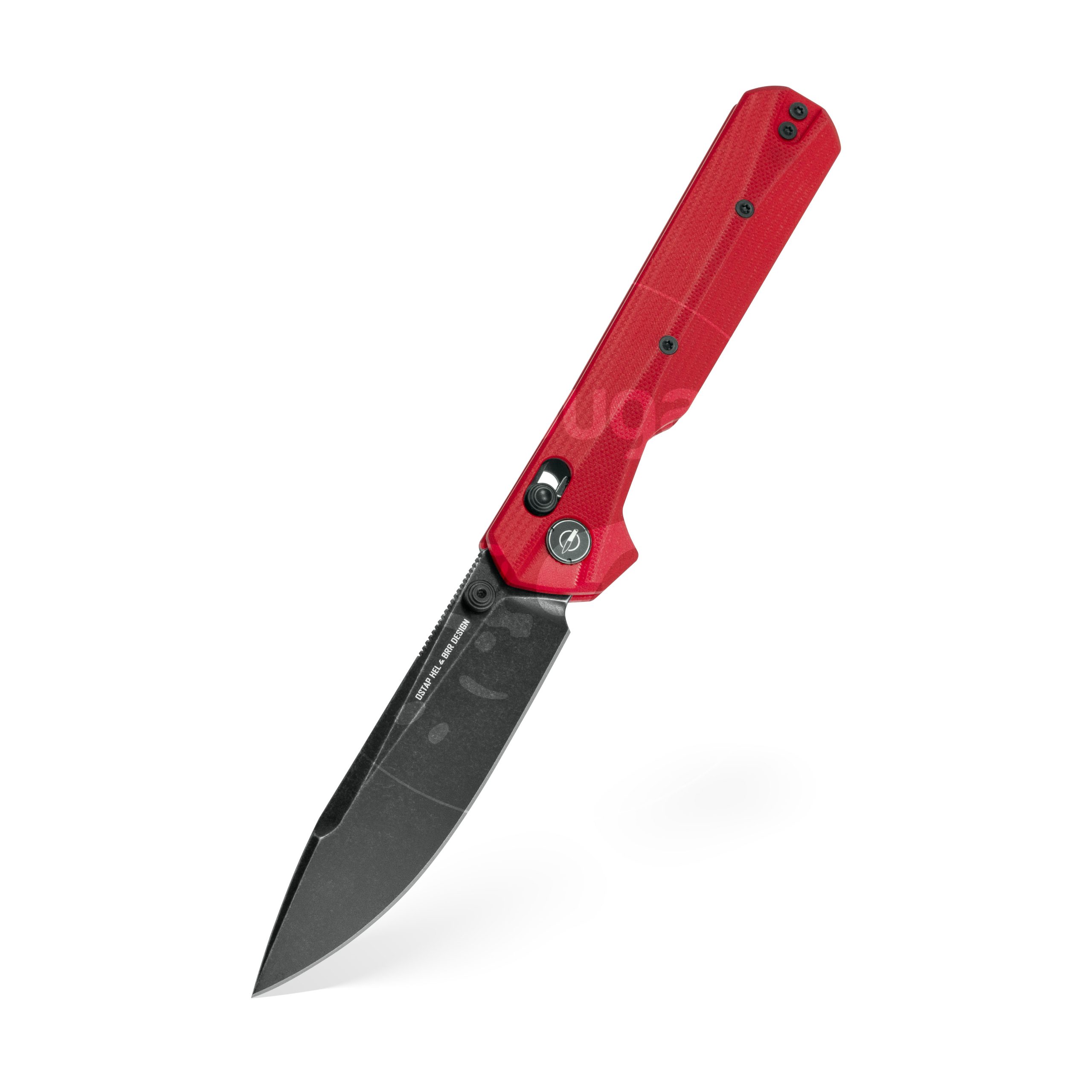 Nóż Składany KNIVESPL The First Black Stonewashed 14C28N Red G10 Crossbar Lock Thumb Stud