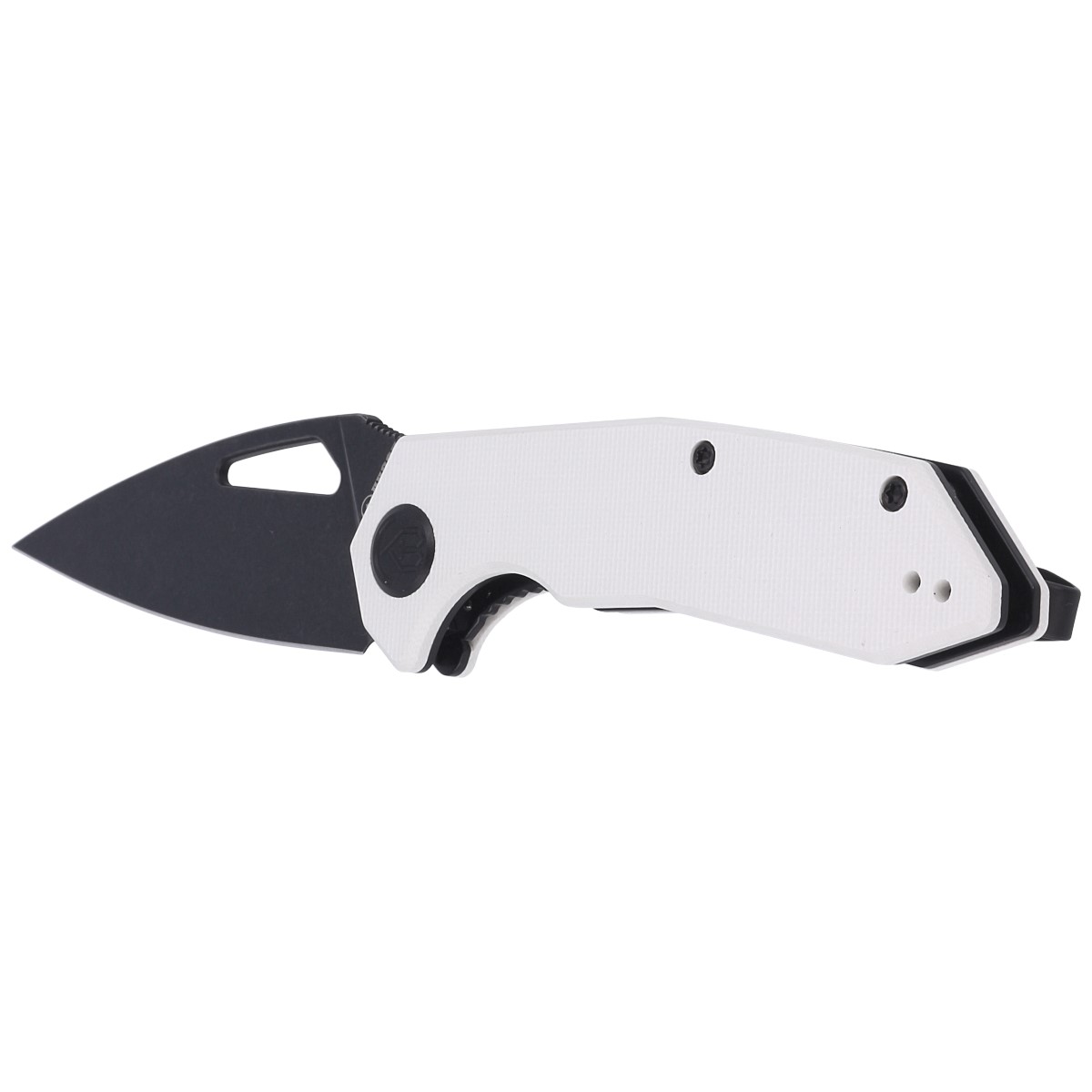 Głownia noża ma nietypowy kształt typu leaf shaped i została wykończona metodą Dark Stonewashed, co maskuje rysy i nadaje nożowi charakterystyczny wygląd. Agresywny czubek głowni sprawia, że jest ona gotowa na różne wyzwania. Grubość klingi zapewnia wytrzymałość, a wysoki, płaski szlif gwarantuje doskonałe właściwości tnące. Mechanizm otwierający ostrze działa płynnie dzięki ceramicznym łożyskom kulkowym. Możesz otworzyć nóż za pomocą otworu w klindze. Na grzbiecie klingi znajduje się upper jimping oraz karbowane oparcie pod kciuk. Mechanizm blokady to niezawodny Liner-Lock.