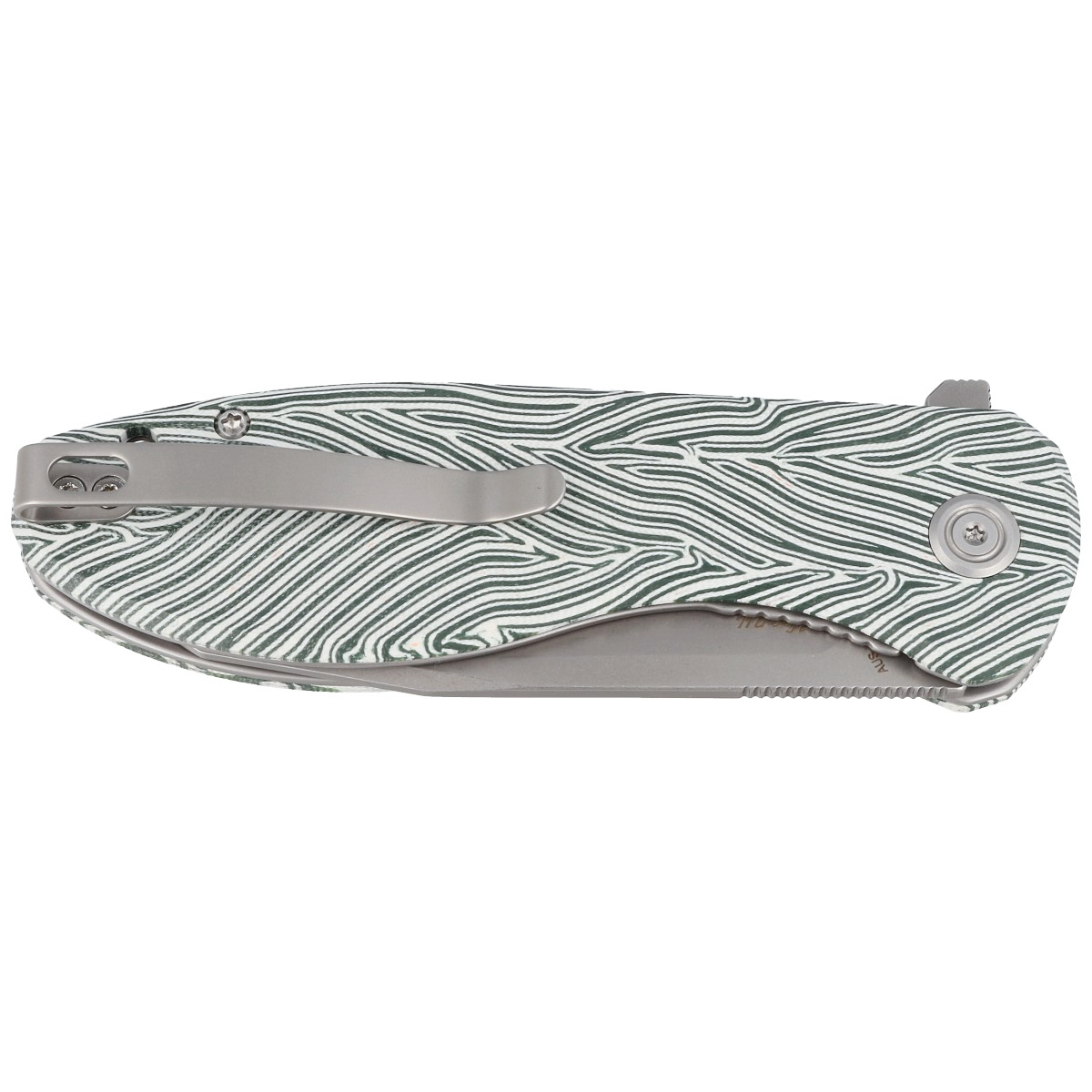 Klinga noża została wykonana z japońskiej stali nierdzewnej AUS-10, często porównywanej do stali z serii 440C. Jednak drobne różnice składu sprawiają, że AUS-10 jest twardsza (zazwyczaj hartowana do około 60 HRC) i wolniej tępi się, nie tracąc przy tym odporności na rdzę. Noże z tej stali są stosunkowo ekonomiczne i stanowią doskonały wybór dla tych, którzy cenią jakość i trwałość.