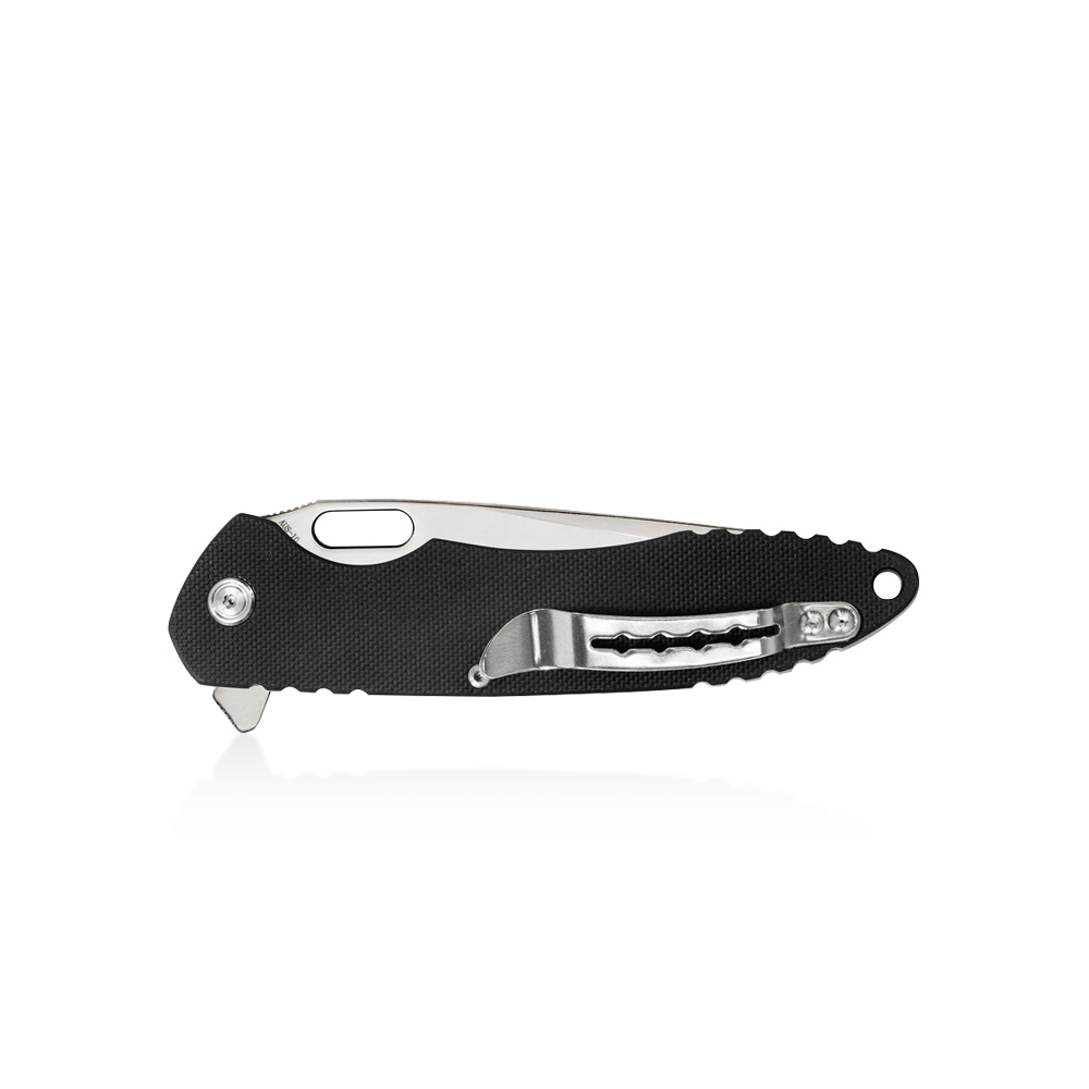 Stalowy klips ze stali nierdzewnej 420J2 zapewnia stabilne przenoszenie noża w kieszeni, zamocowanie w plecaku, sakwie, nerce itd., czym przyczynia się do minimalizacji ryzyka zgubienia narzędzia. Klips zaprojektowano w stylu pasującym do całości projektu.NAZWA: Darkness