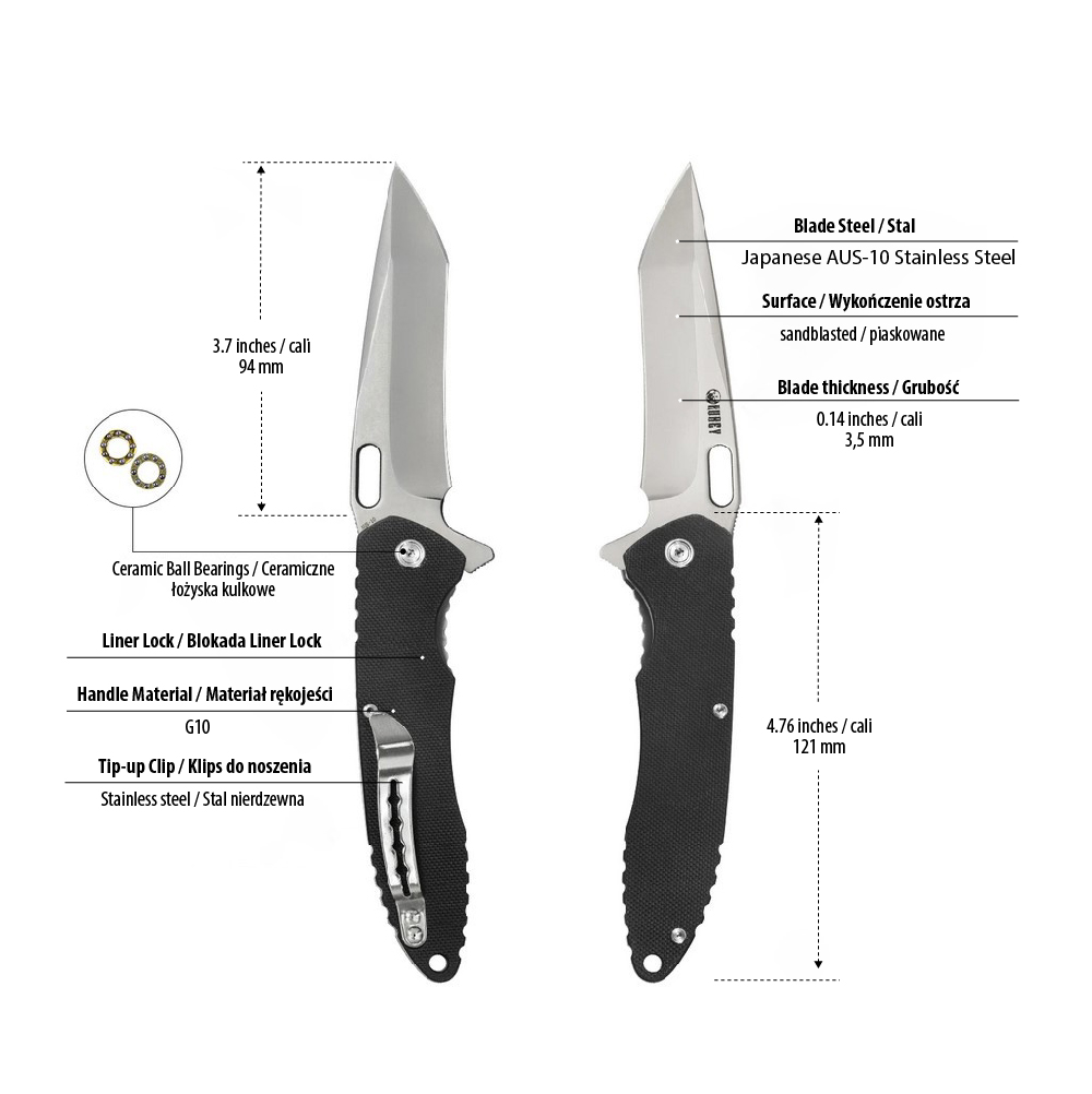 DŁUGOŚĆ OSTRZA: 94 mm / 3.7”GRUBOŚĆ OSTRZA: 3,5 mm / 0.14″