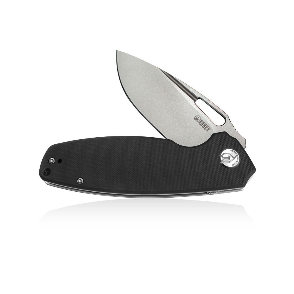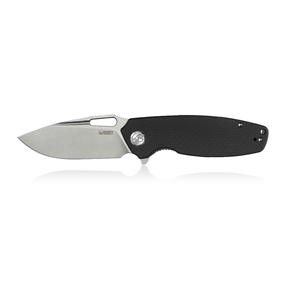 Nóż składany Kubey Tityus KU322A D2 Black G10 posiada wydajne ostrze typu drop point ze znanej z efektywności cięcia i nieuciążliwej w ostrzeniu i pielęgnacji stali D2 (wykończenie: szkiełkowane / bead blasted). Nóż jest otwierany przy użyciu flippera (płetwy) lub otworu w głowni a ostrze przed zamknięciem zabezpiecza blokada liner lock. Okładki rękojeści wykonane zostały z czarnego kompozytu G10.
