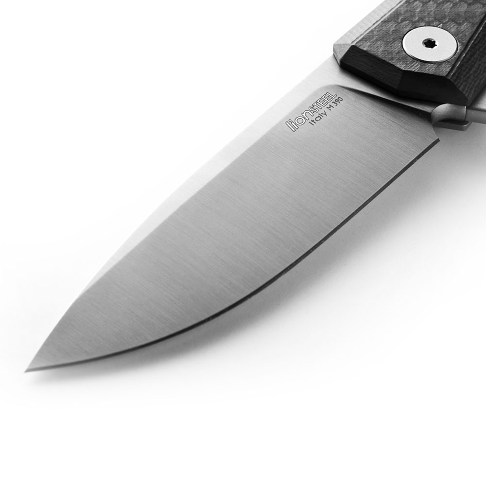 Ostrze noża wykonane zostało ze stali proszkowej M390. Jest to jedna z kilku stali dostępnych na rynku znajdujących się w absolutnym topie jakościowym materiałów służących do produkcji noży premium. Najlepsze jej właściwości uzyskuje się poprzez właściwe wykonanie procesu hartowania, w którym bezbłędnie muszą być przeprowadzone 3 etapy: utwardzanie, chłodzenie kriogeniczne (wymrażanie) i odpuszczanie. Właściwie przygotowane ostrze z M390 jest ekstremalnie wytrzymałe na przeciążenia, niezwykle długo pozostaje ostre (bardzo wolno się ściera) i ma doskonałe właściwości antykorozyjne.