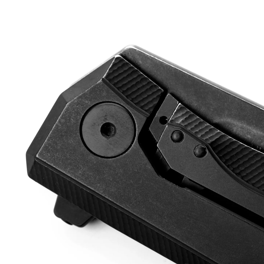 Klips mocujący w stylu Tip-Up zlokalizowany na zakończeniu rękojeści noża umożliwia przenoszenie zamkniętego ostrza wierzchołkiem do góry. Klips wykonany został z tytanu. Istnieje też możliwość przełożenia klipsa na drugą stronę rękojeści. Jest on bowiem mocowany na krawędzi rękojeści, śrubką wyposażoną w zbijak do szyb z węglika wolframu. Dla osób niekorzystających z tej funkcji producent przewidział zamienną śrubę mocującą bez zbijaka, załączoną do zestawu.