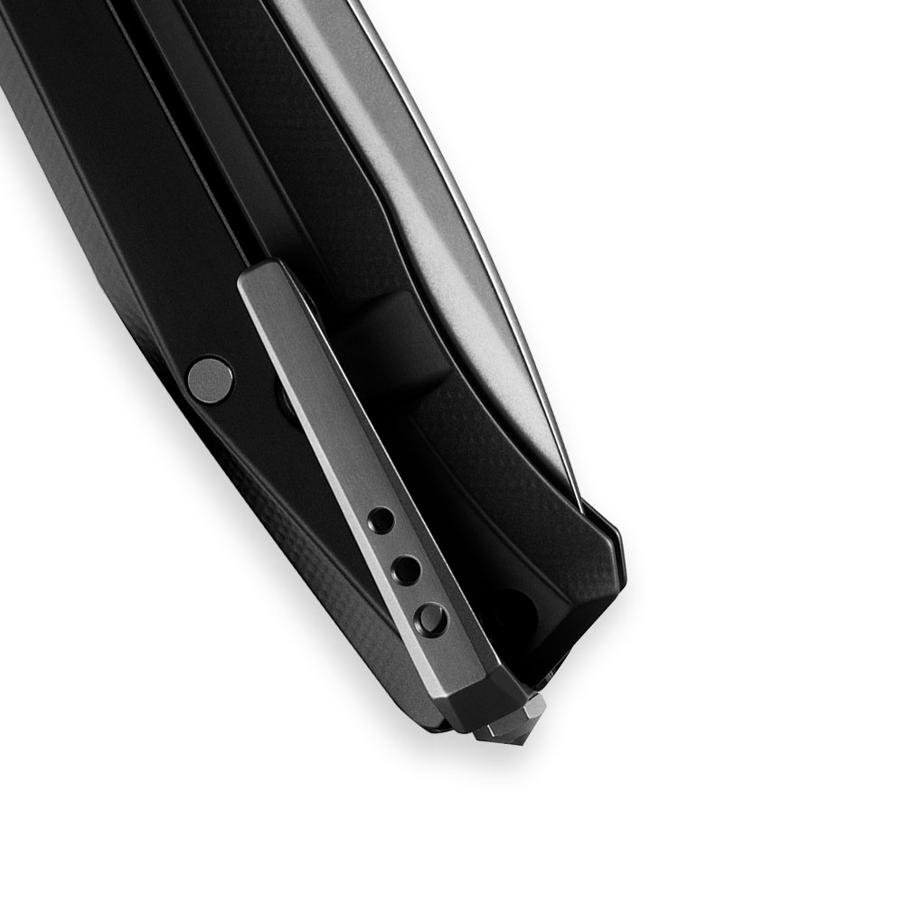 Klips mocujący w stylu Tip-Up zlokalizowany na zakończeniu rękojeści noża umożliwia przenoszenie zamkniętego ostrza wierzchołkiem do góry. Klips wykonany został z tytanu. Istnieje też możliwość przełożenia klipsa na drugą stronę rękojeści. Jest on bowiem mocowany na krawędzi rękojeści, śrubką wyposażoną w zbijak do szyb z węglika wolframu. Dla osób niekorzystających z tej funkcji producent przewidział zamienną śrubę mocującą bez zbijaka, załączoną do zestawu.