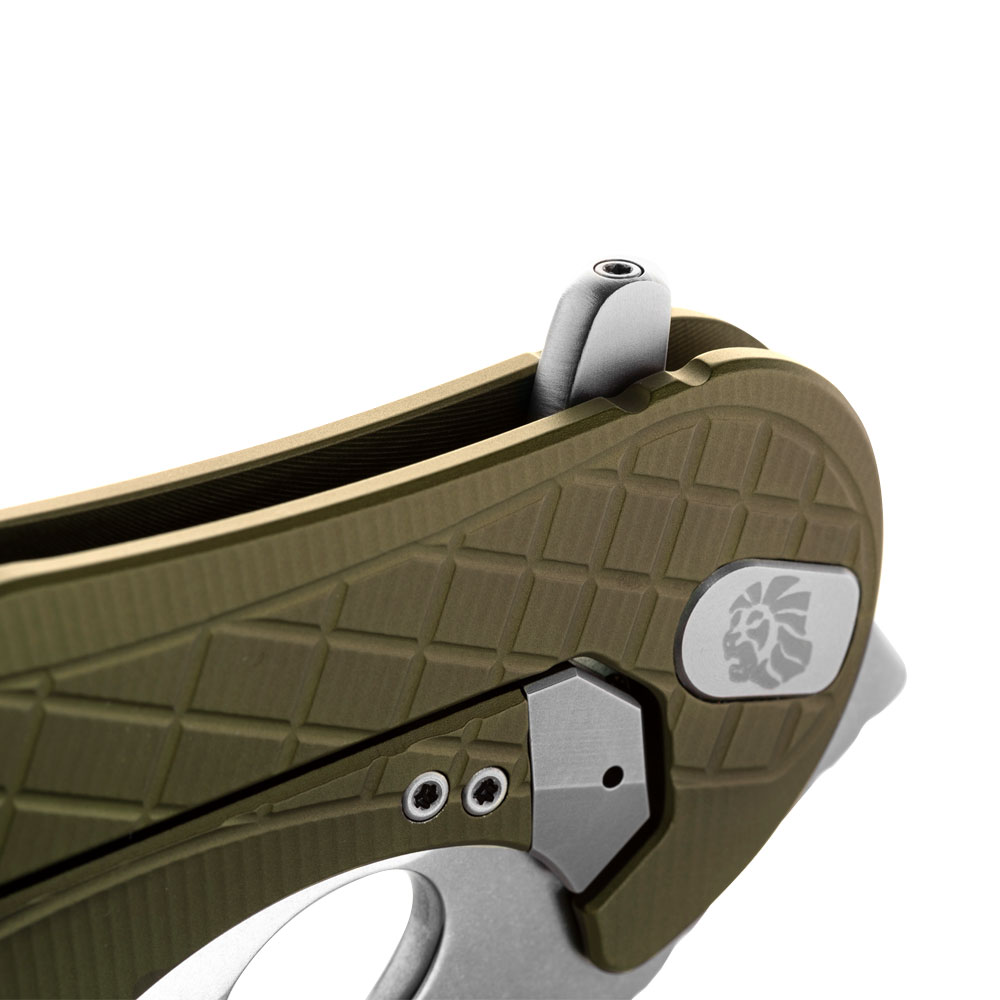 Otwieranie noża odbywa się za sprawą subtelnie wystającego z głowni, demontowalnego flippera (płetwa). Rozkładanie noża następuje bardzo swobodnie i płynnie dzięki wyposażeniu go w system Double Crown oparty o łożyska kulkowe. System ten jest rozwinięciem standardowego łożyska kulkowego i posiada dwa pierścienie łożyskujące dla lepszej stabilność ostrza i łatwiejszego otwierania foldera. Nóż posiada stabilną i wytrzymałą blokadę zabezpieczającą przed przypadkowym zamknięciem typu frame lock. W tytanowym listu blokady umieszczono stalową wkładkę dla zwiększenia żywotności mechanizmu blokującego. Wkładka posiada też specjalną wypustkę, która zapobiegać ma przed nadmiernym odciągnięciem blokady na zewnątrz rękojeści (overtravel stop).