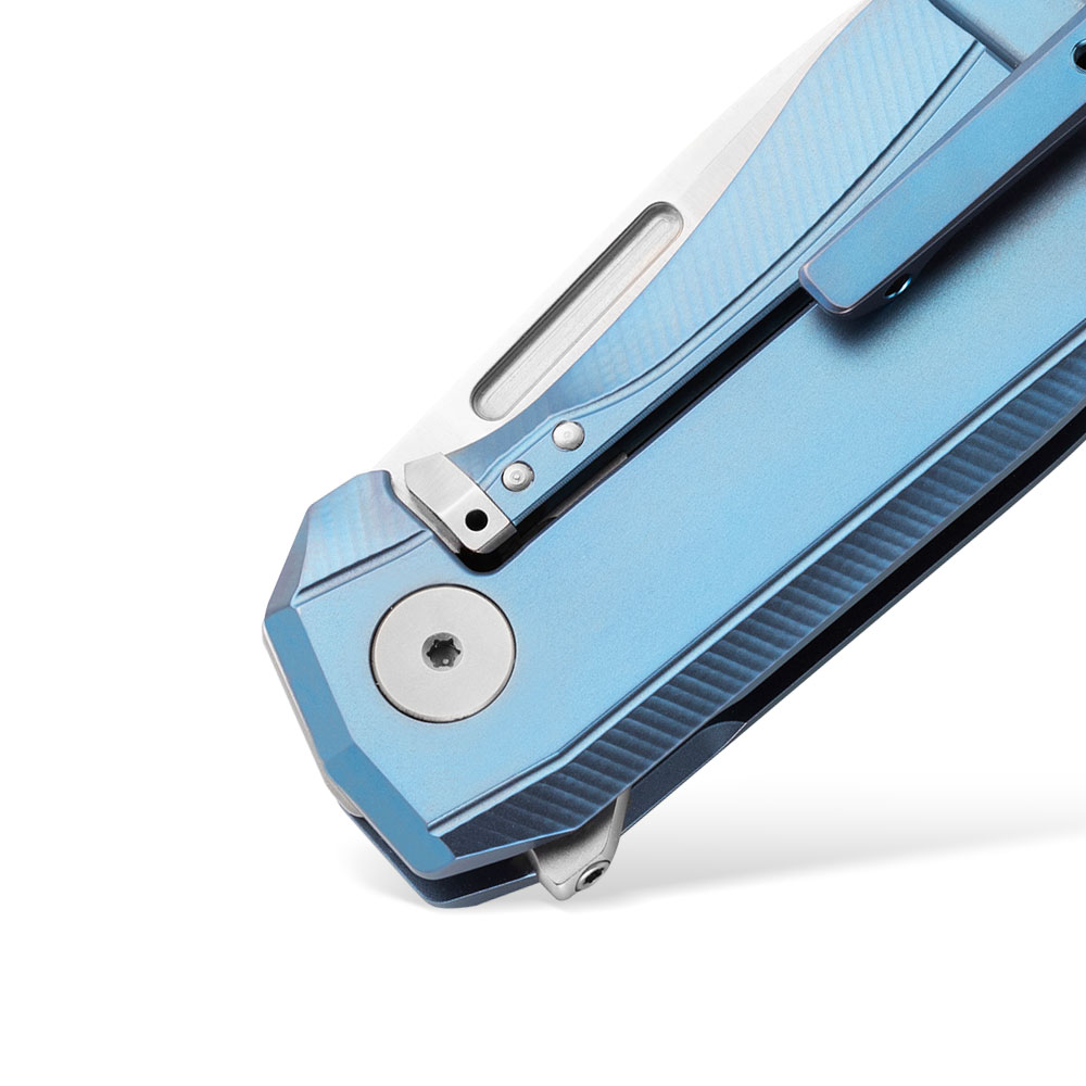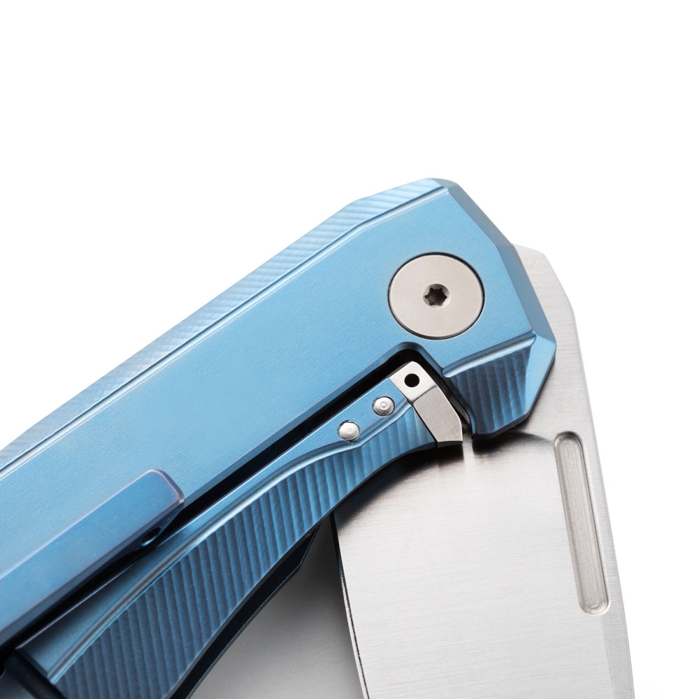 - Rękojeść: tytanowa, frezowana, dwutonowa, tytanowy backspacer, obustronny tytanowy klips mocujący (Tip-Up)