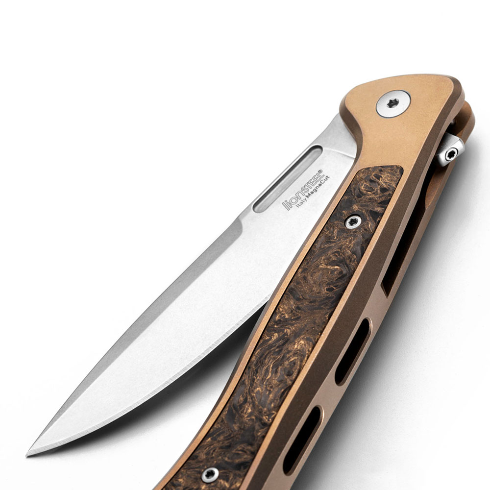 Nóż składany LionSTEEL SKinny SK01 BR Stonewash MagnaCut Bronze Titanium Carbon Fiber by Moletta