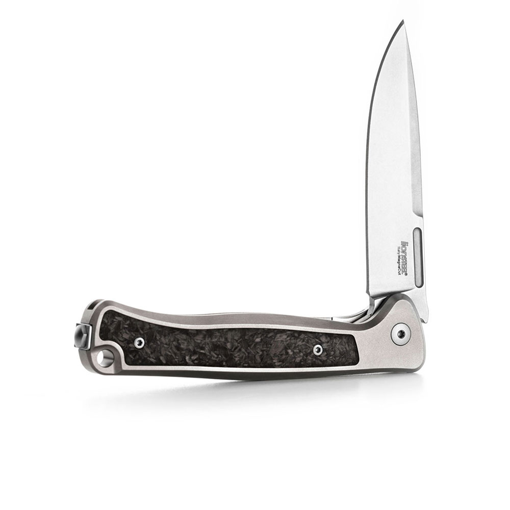 - Rękojeść: tytanowa (titanium 6AI4V), frezowana, kolor szary (grey), wstawka z włókna węglowego (carbon fiber), obustronny stalowy klips mocujący (Tip-Up, Deep Carry)