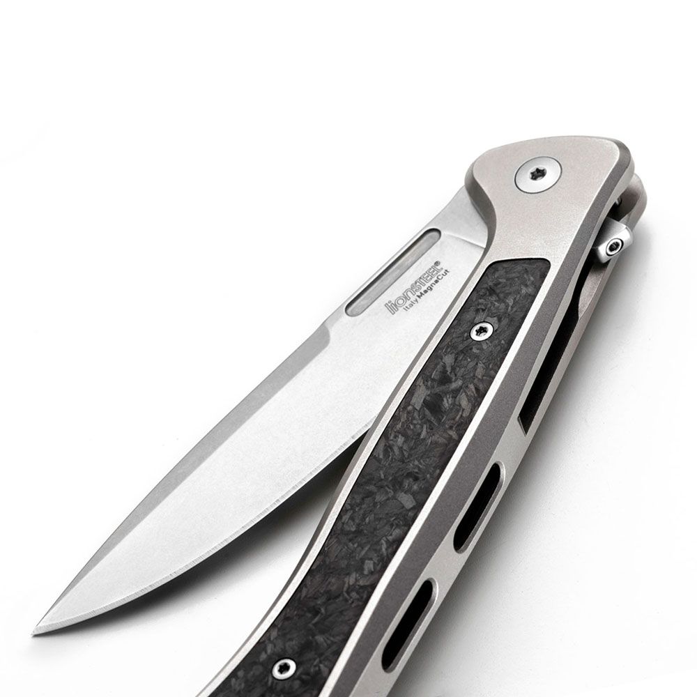 Nóż składany LionSTEEL SKinny SK01 GY Stonewash MagnaCut Grey Titanium Carbon Fiber by Moletta