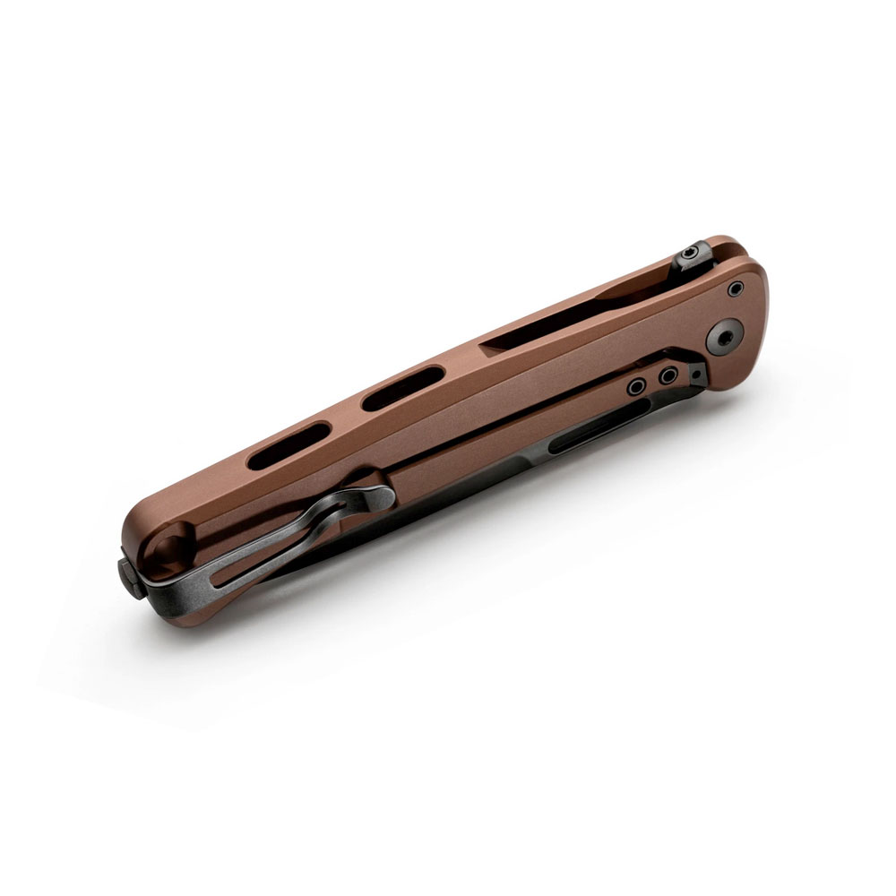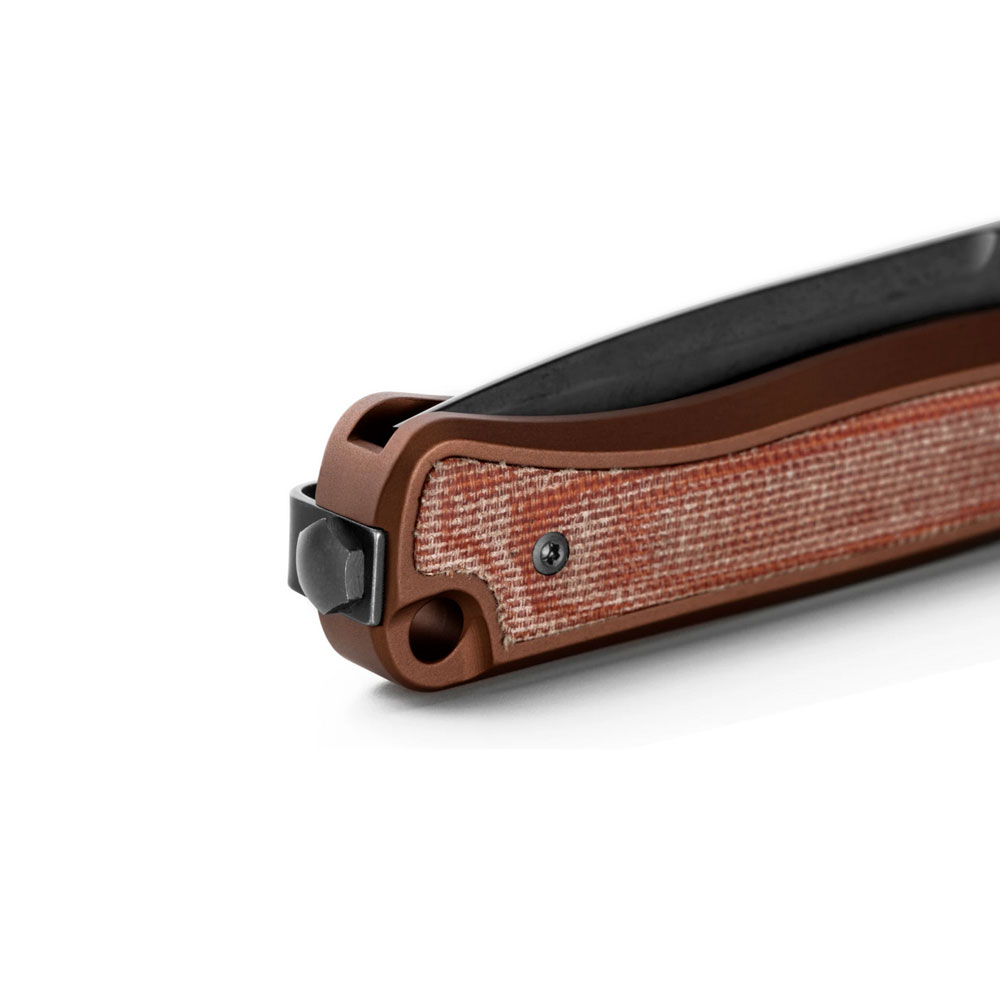 - Rękojeść: aluminiowa, frezowana, kolor Earth Brown (brązowy), wstawka z brązowej micarty, obustronny stalowy klips mocujący (Tip-Up, Deep Carry)