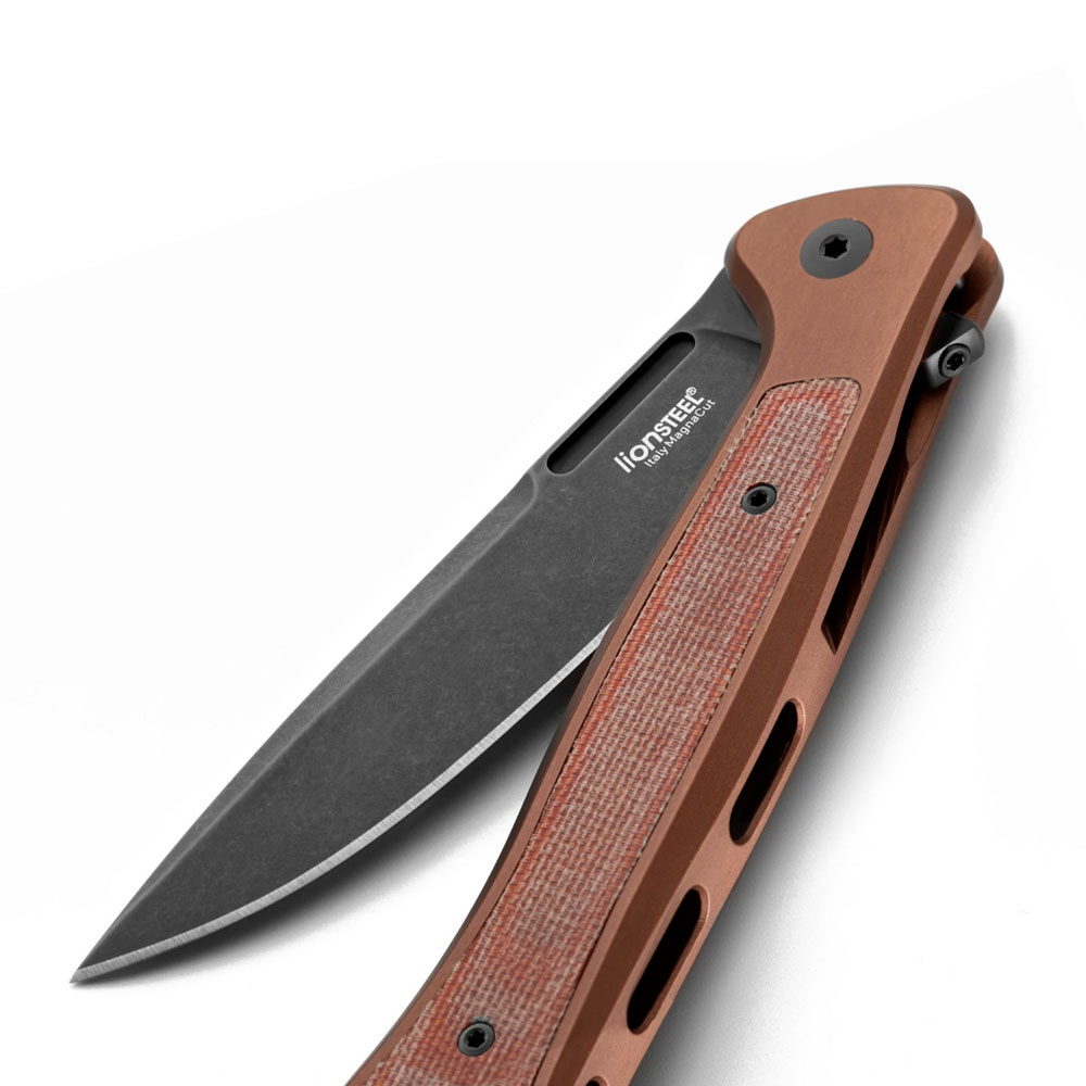 Nóż składany LionSTEEL SKinny SK01A EB Old Black MagnaCut Earth Aluminium Brown Micarta by Moletta