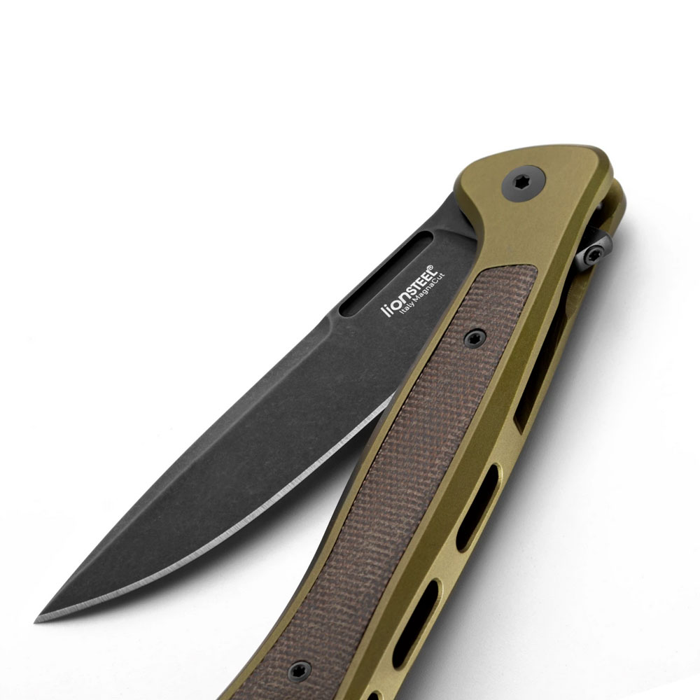 Nóż składany LionSTEEL SKinny SK01A GB Old Black MagnaCut Green Aluminium Brown Micarta by Moletta