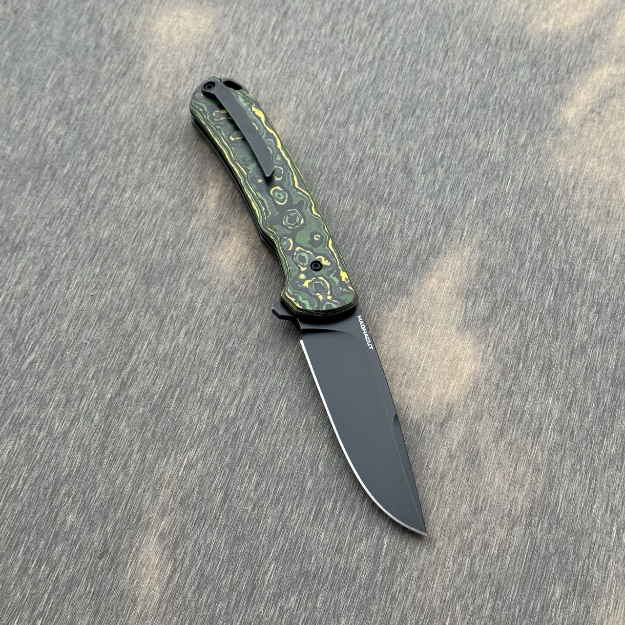 - Stal: MagnaCut (63-64 HRC), wykończenie ostrza: czarne / black stonewashed (PVD)