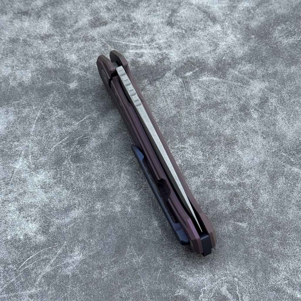Nóż Składany MK Knives & Tools Ingeni MT 'Candy’ | Seria Mid-Tech Po Customizacji | Stonewashed CPM-S90V Opera Mauve Purple Titanium Flipper Frame Lock