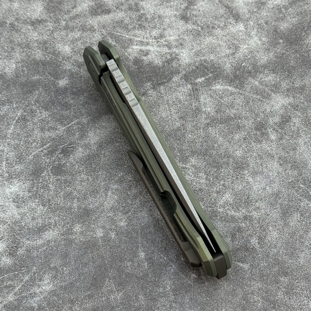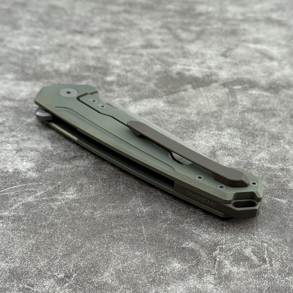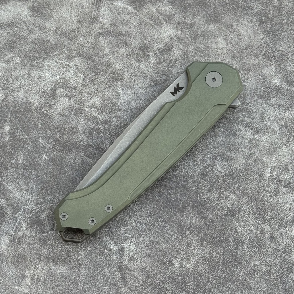 Nóż Składany MK Knives & Tools Ingeni MT 'Oleaf’ | Seria Mid-Tech Po Customizacji | Stonewashed CPM-S90V Green Titanium Flipper Frame Lock