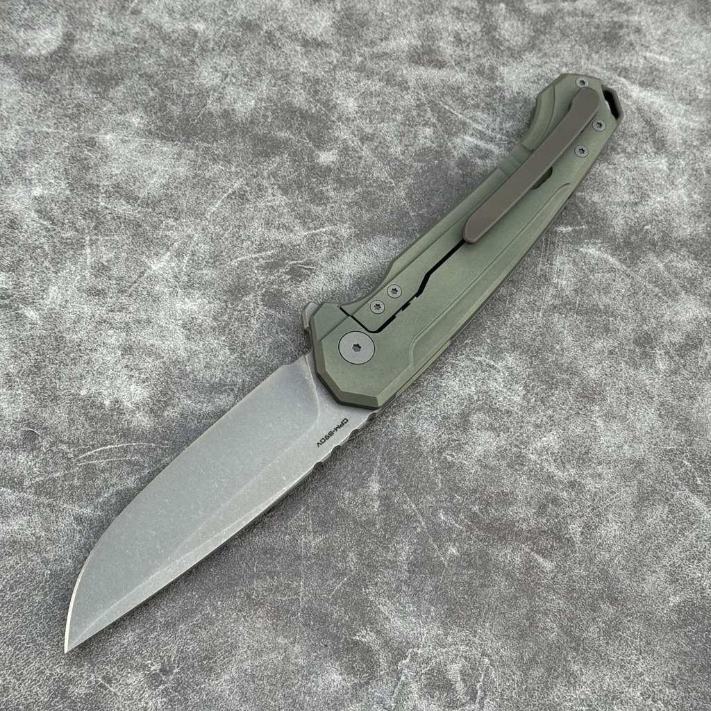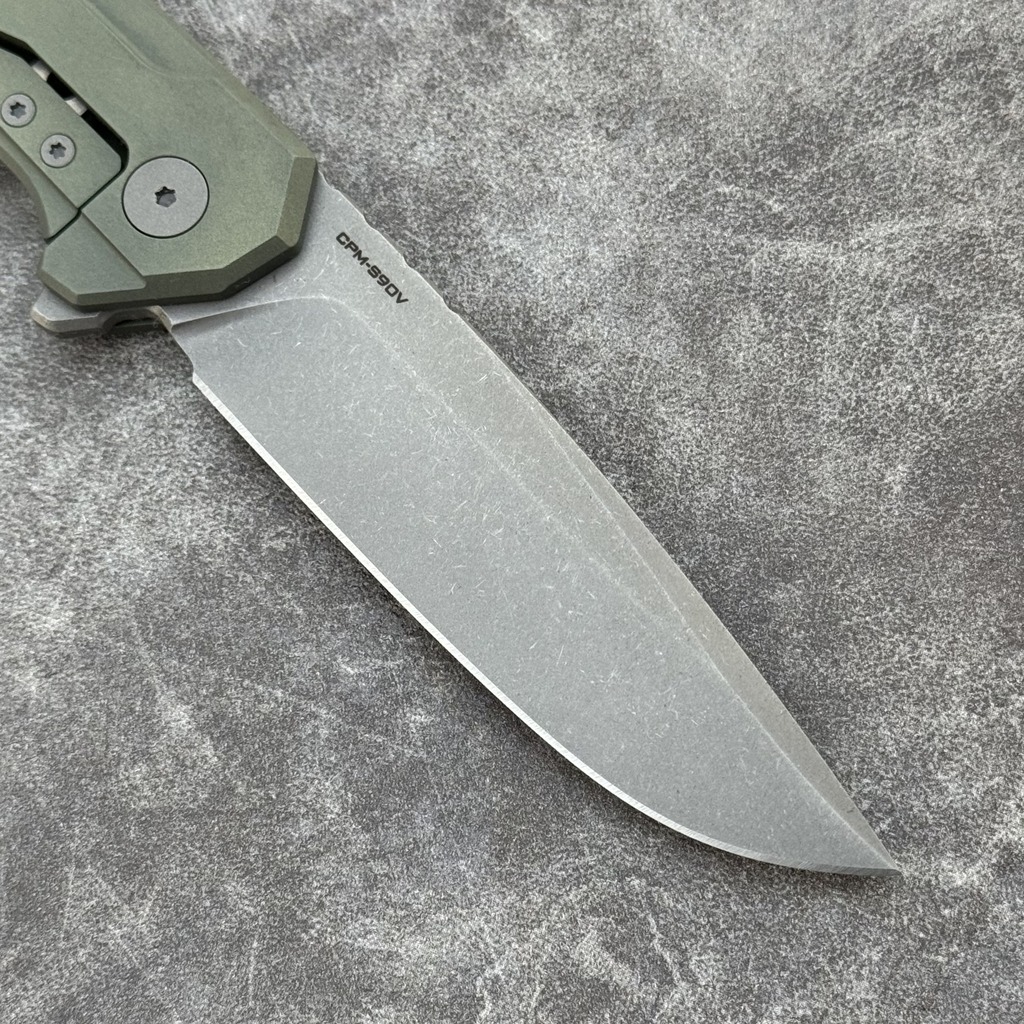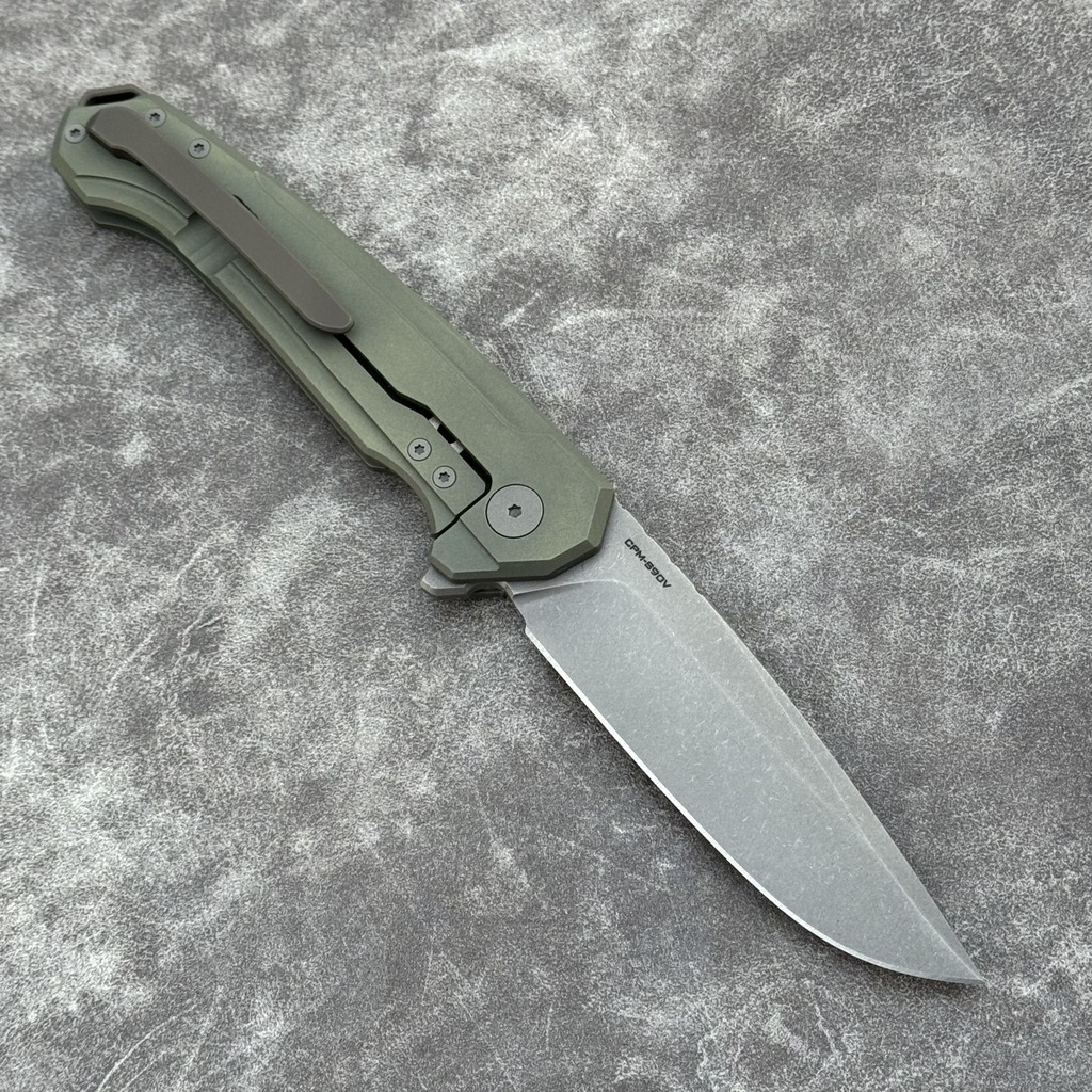 Nóż Składany MK Knives & Tools Ingeni MT 'Oleaf’ | Seria Mid-Tech Po Customizacji | Stonewashed CPM-S90V Green Titanium Flipper Frame Lock