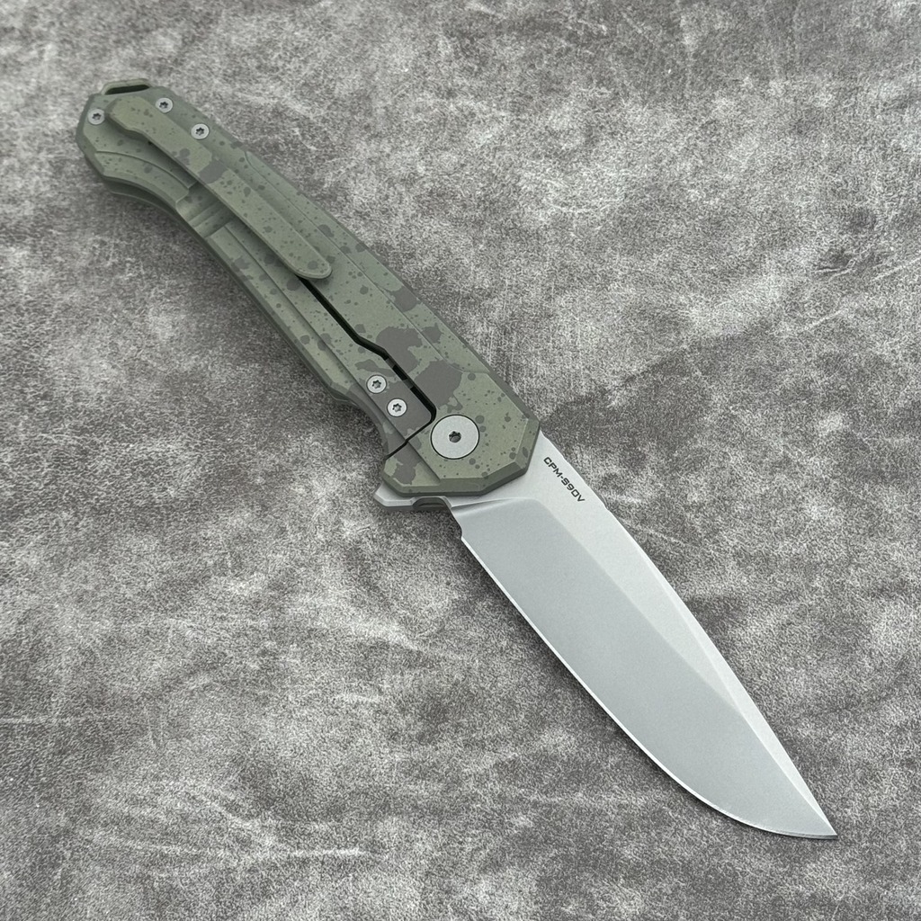 - Stal: CPM-S90V (59-61 HRC), wykończenie: szkiełkowane (bead blast)