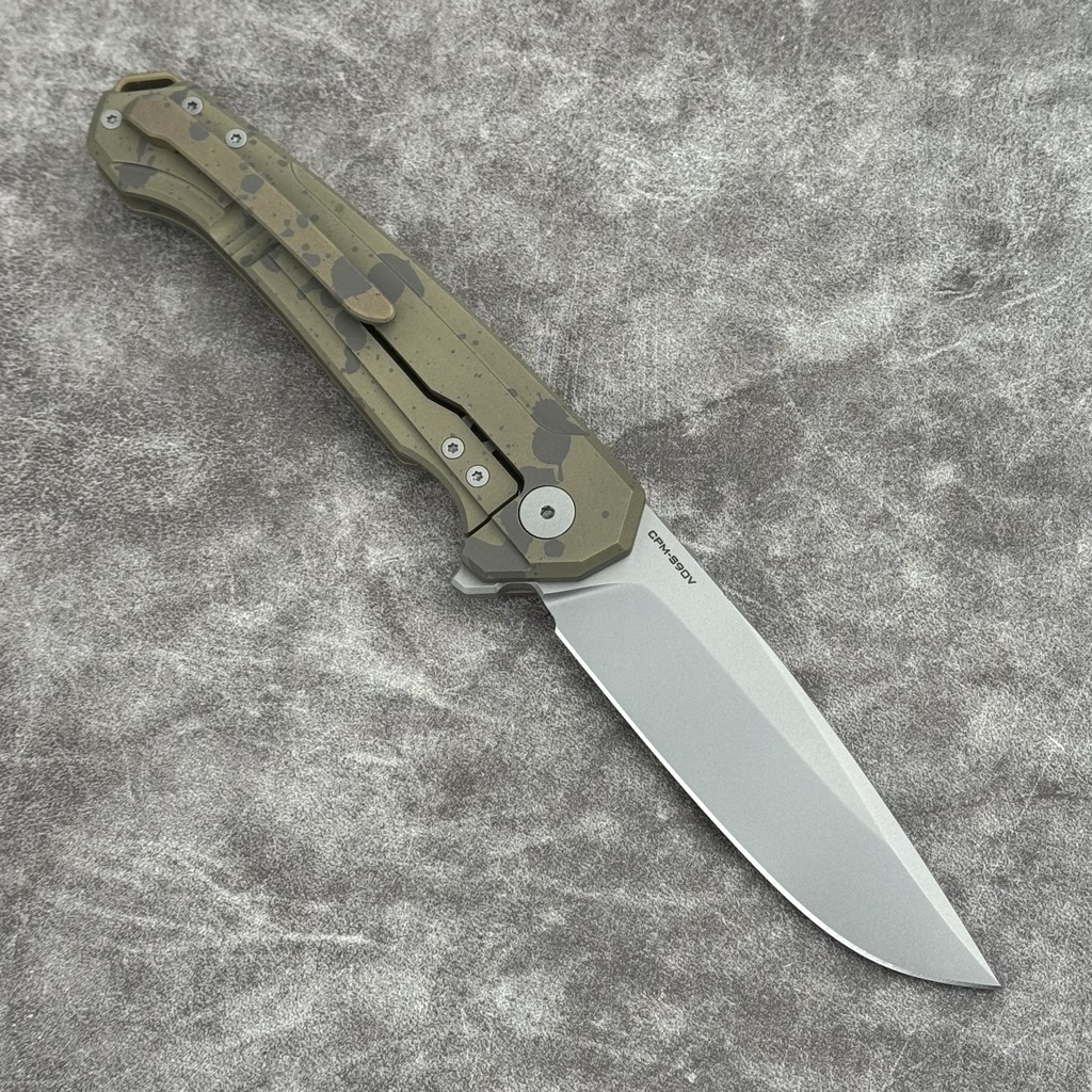 - Stal: CPM-S90V (59-61 HRC), wykończenie: szkiełkowane (bead blast)
