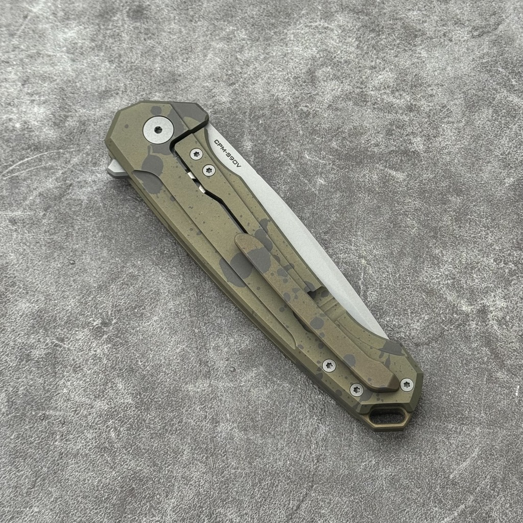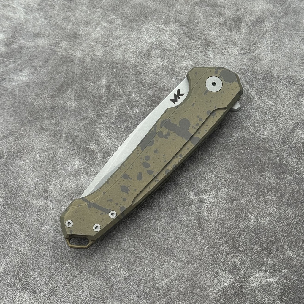 Nóż Składany MK Knives & Tools Ingeni MT 'Scatter 2′ | Seria Mid-Tech Po Customizacji | Bead Blasted CPM-S90V Brass/Olive Anodized Titanium Flipper Frame Lock