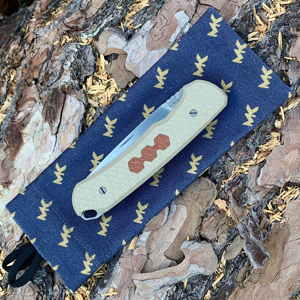 Nóż składany Humbler dostarczany jest z materiałowym pouch’em z logiem MK. Zamykany na rzep pokrowiec służy do przechowywania lub przenoszenia noża w zależności od potrzeb i preferencji użytkownika.NAZWA: Humbler „Hexagons Synergy”